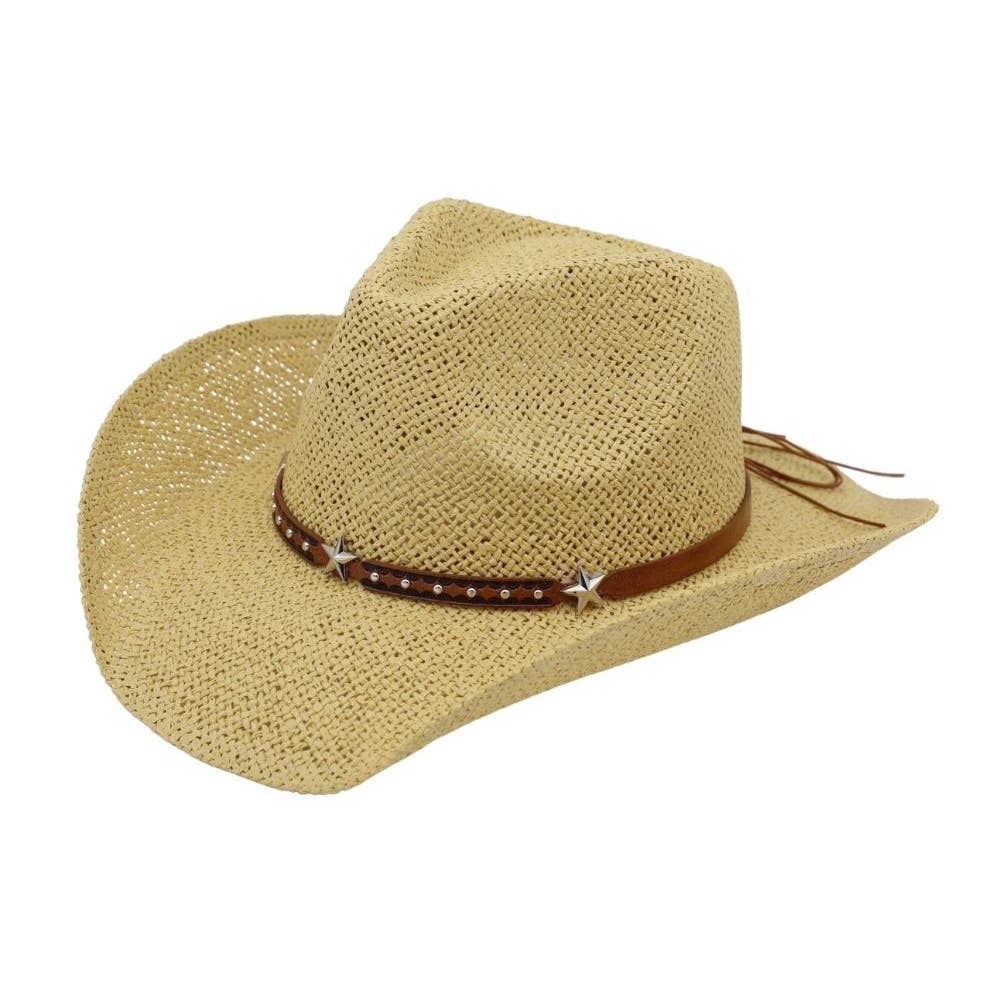 Chapeau de cowboy rond Porkpie Crown Palm Straw