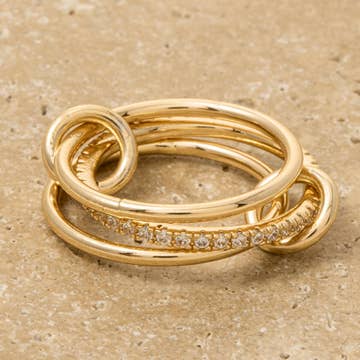 Trois anneaux. Deux tons. Une bague signature — avec un détail facetté qui apporte de la lumière à chaque angle. La bague Transcend Triple Band réunit trois finitions distinctes dans un design harmonieux. Deux anneaux en or lisse entourent un anneau en argent texturé avec des détails facettés, créant un éclat doux et un contraste dynamique. Un nœud subtilement torsadé les lie tous — symbolisant l'unité dans la dualité. C'est une pièce audacieuse mais raffinée que vous voudrez porter tous les jours, seule ou empilée. Complétez le look avec les créoles et le bracelet Twin-Tone de la collection Transcend.