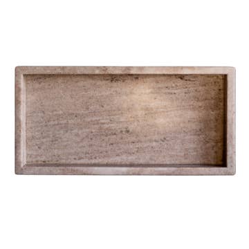 Dimensions 30,5 cm L x 15,2 cm l x 3,8 cm H environ. Ce plateau en pierre taillé à la main est à la fois fonctionnel et élégant. Fabriqué en pierre de haute qualité, il est solide et durable, idéal pour servir et présenter des objets. Son design unique taillé à la main ajoute une touche d’élégance à toute pièce ou événement.