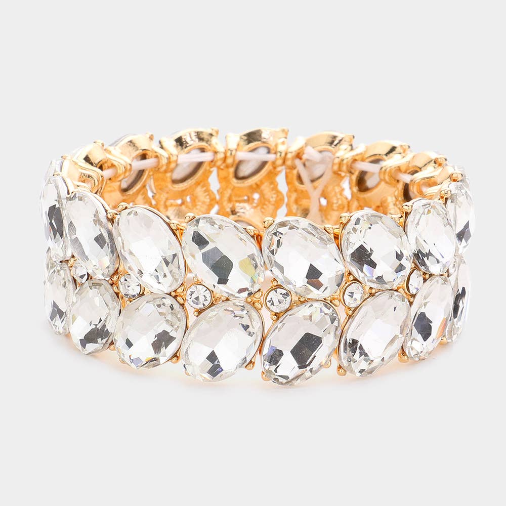 Ajoutez une touche d'éclat à votre look quotidien avec ce bracelet élastique élégant orné de perles en cristal de verre demi-rondes. Doté de cristaux de verre scintillants et de perles demi-rondes, ce bracelet capte magnifiquement la lumière sous tous les angles. Parfait pour superposer ou porter seul, c'est un accessoire polyvalent qui passe facilement du jour à la nuit.