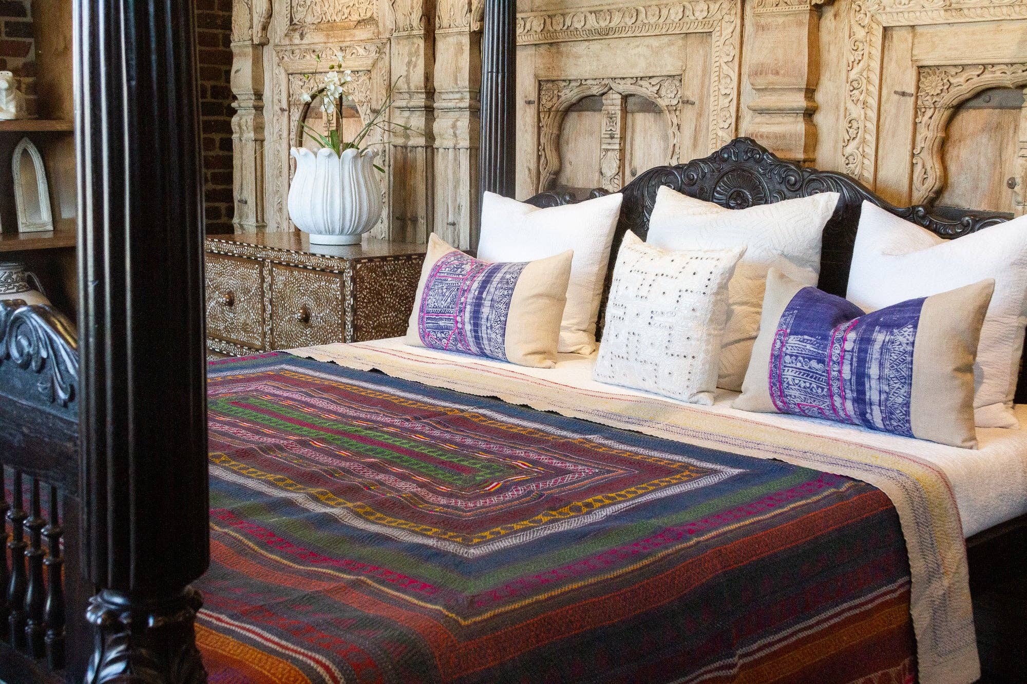 Couvre-lit Kantha Quilt Indian Quilt Block Print en vente B2B