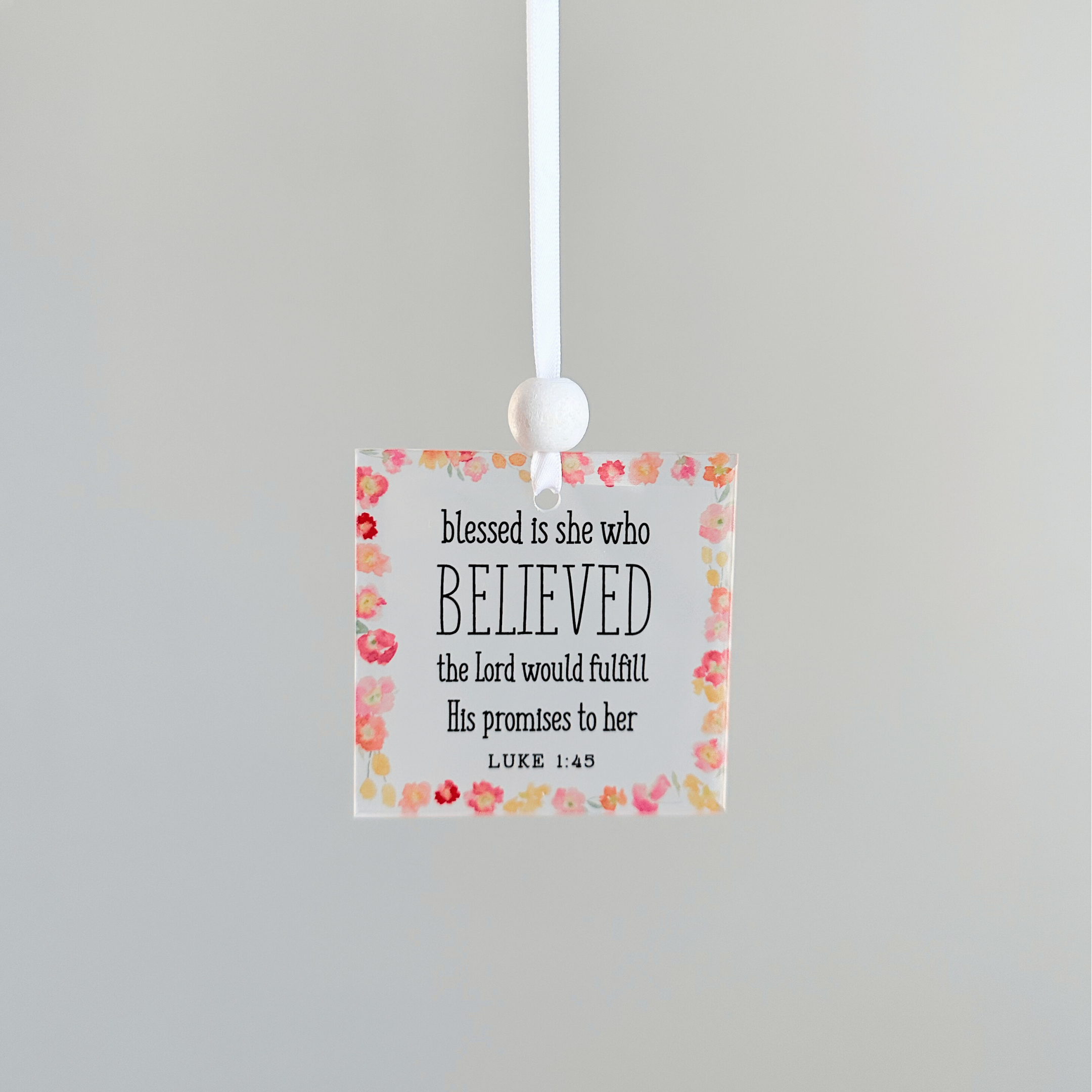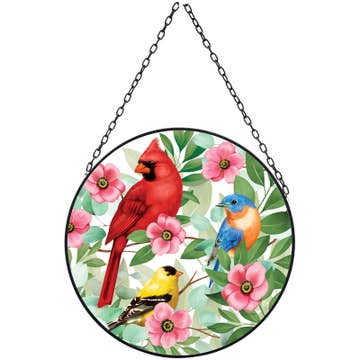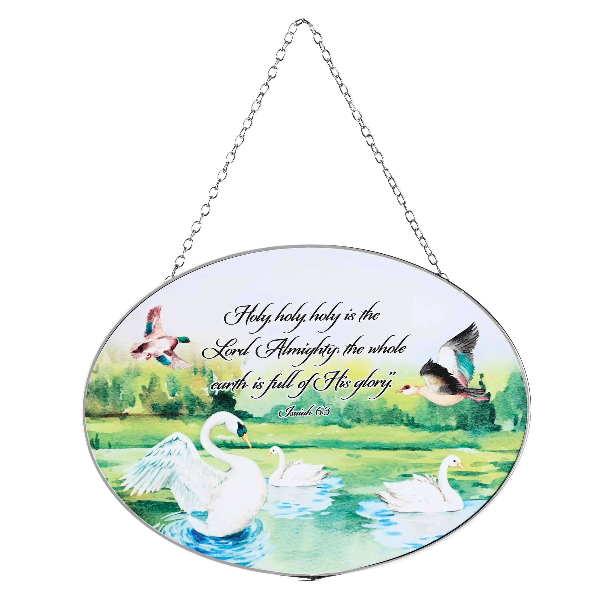 Accueillez le printemps avec ce capteur de soleil de forme ovale qui fleurit avec des fleurs et des oiseaux colorés et un court vers : Chantez au Seigneur, louez son nom. La taille est de 9 po de large x 6 de haut. Fini avec cadre en métal argenté et chaîne de suspension ; ventouse transparente incluse. Livré dans une boîte à fenêtre, prêt à être offert en cadeau.
