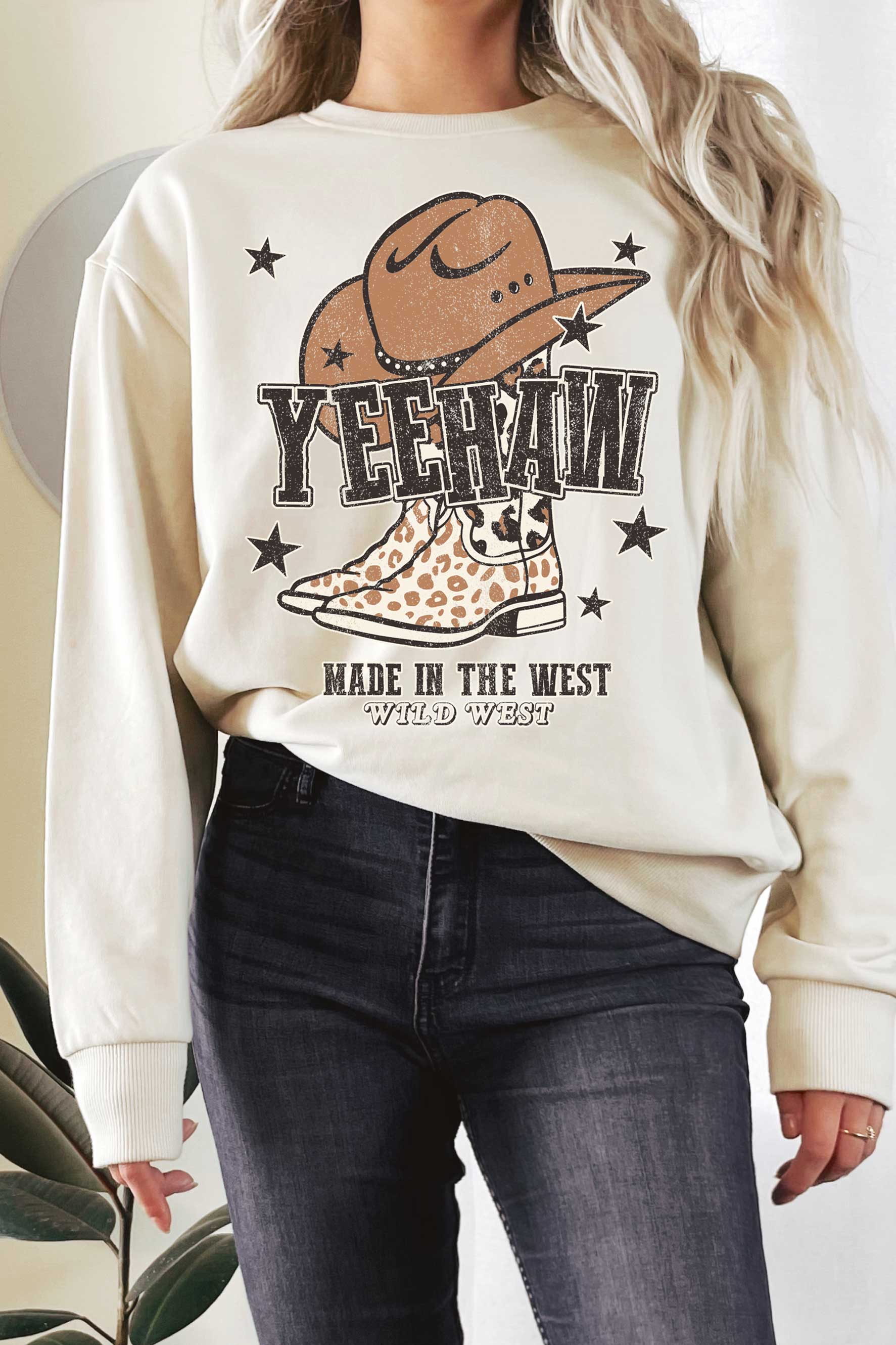 Pull à col rond Graphic Western Country Soundtrack des années 90 en vente B2B