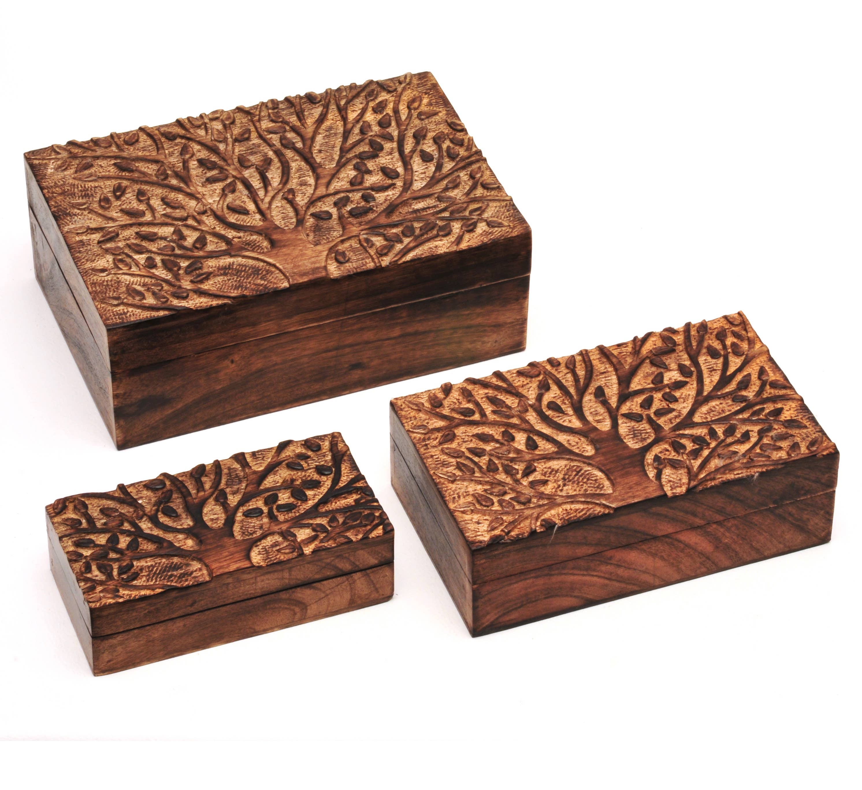 Boîte en bois gravée en forme de crâne de cerf, motif bois de cerf en vente B2B