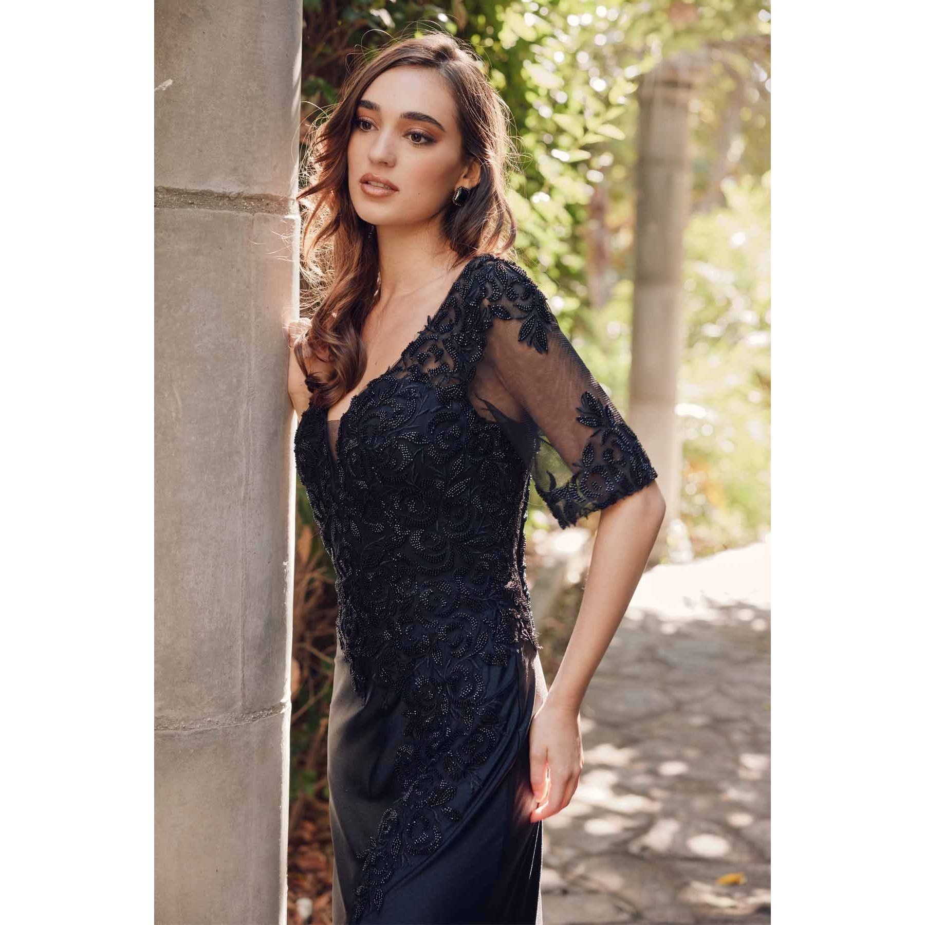 Robe de soirée longue en dentelle noire élégante en vente B2B