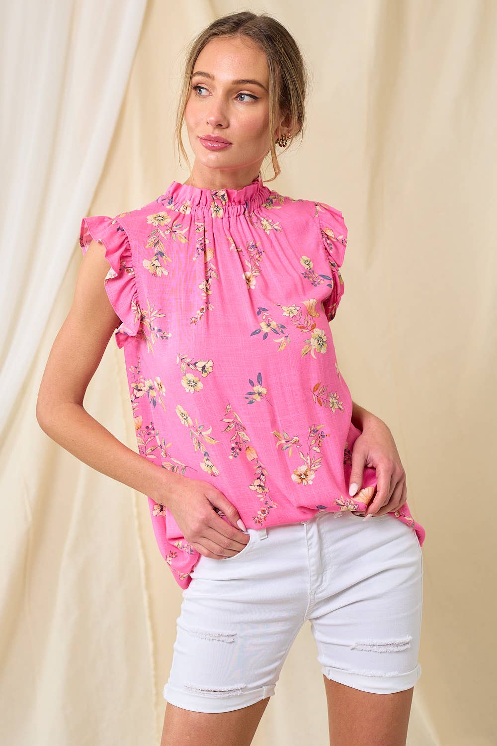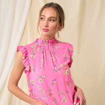 Élégant sans effort et plein de charme, ce haut vous fera rayonner de confiance où que vous alliez. Des manches courtes avec volants encadrent un devant smocké et une ouverture en goutte d'eau à l'arrière. Portez-le avec un jean en denim pour un look mignon. - Volants - Floral - Coton - Ouverture en goutte d'eau - Couleur : Magenta Mult Taille + Coupe - Le mannequin mesure 1,75 m et porte une taille XS - Mesures prises sur la taille S - Poitrine : 52 cm - Longueur : 65 cm