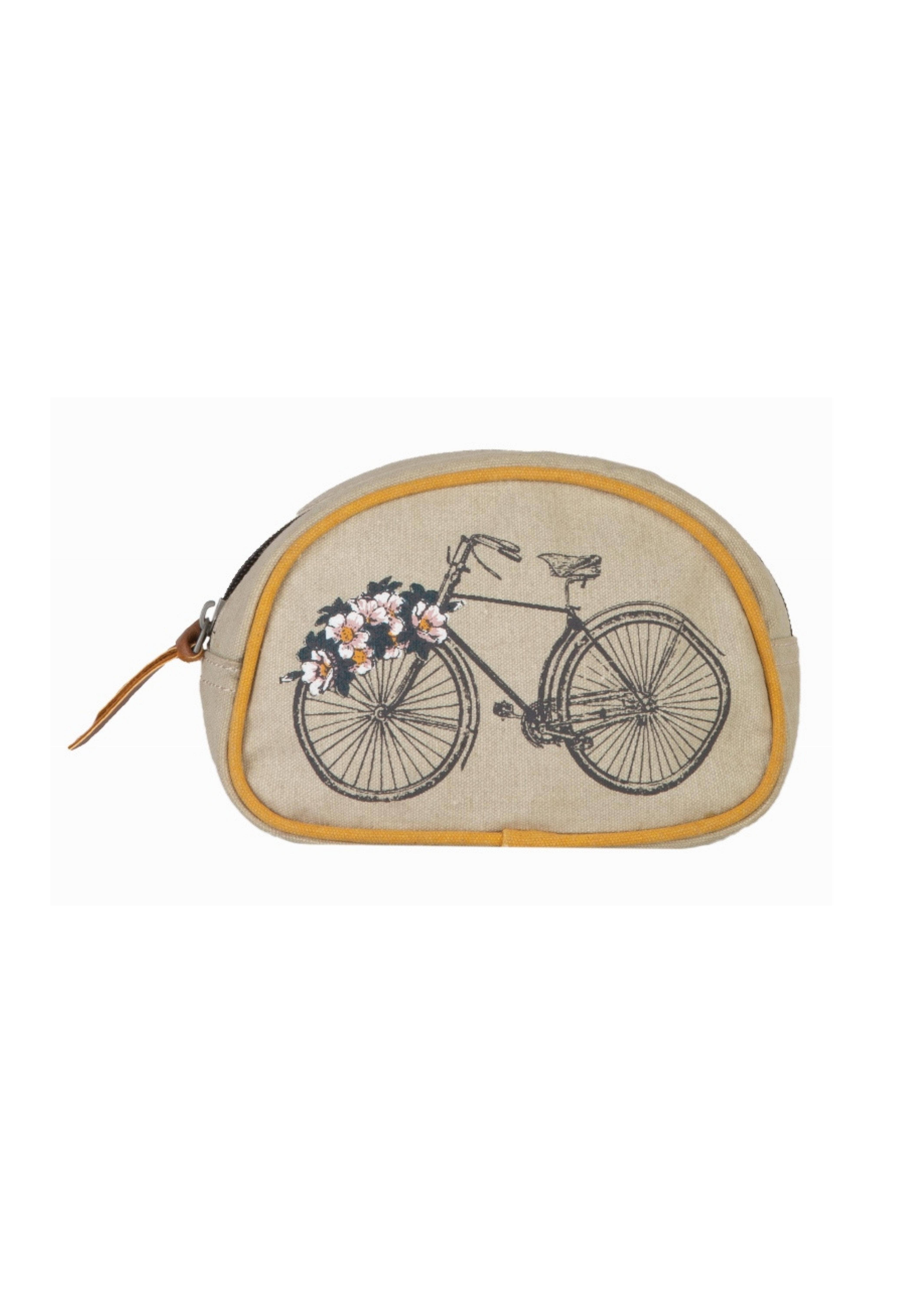 Fabriqué à partir d'un sac de farine recyclé. Fermeture éclair sur le dessus. Une poche intérieure zippée. 10,5 po L x 8 po H 2,5 po D.