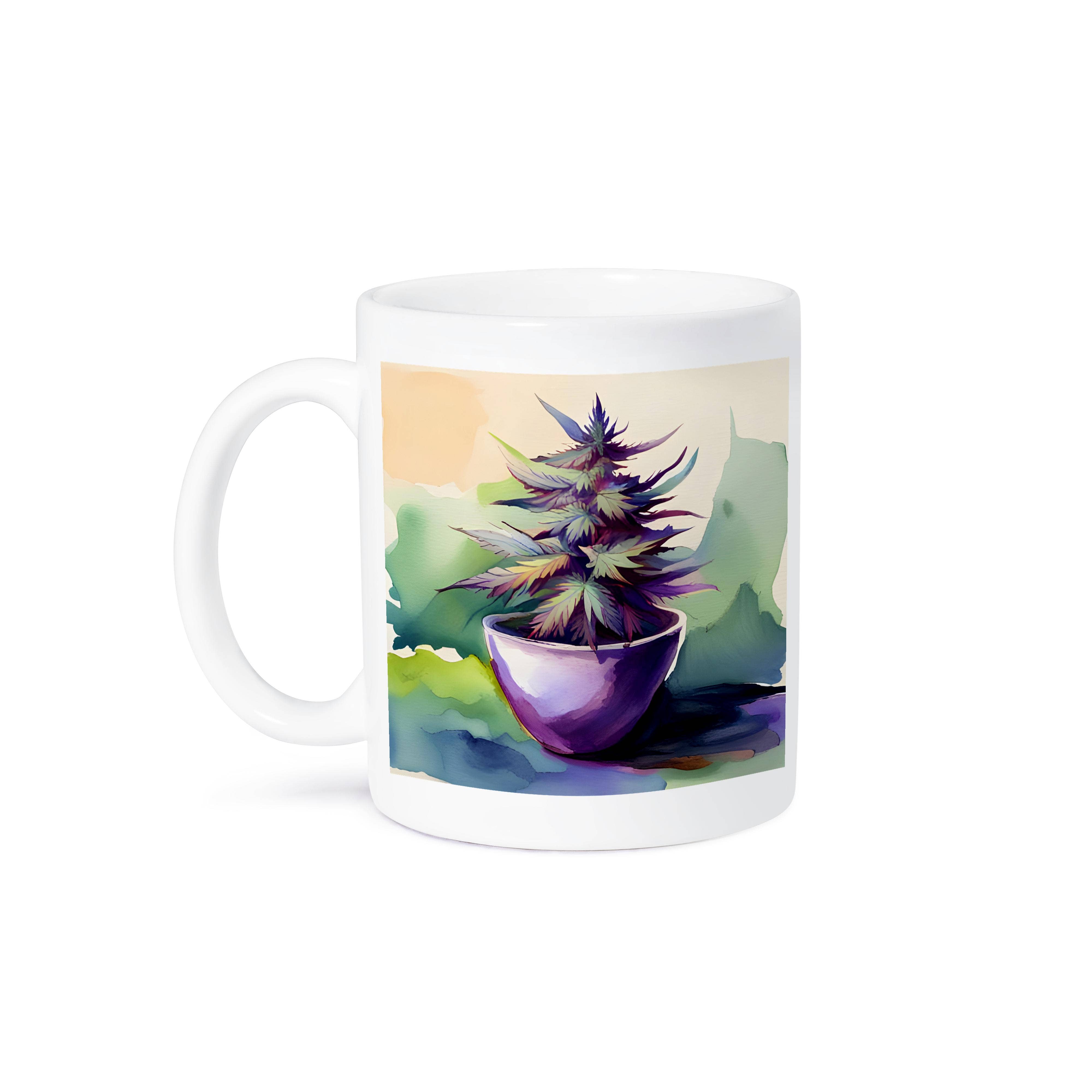 Cannabis et Café - Tasse à Café Parodique Amusante sur le Cannabis Imprimé et Expédié en Caroline du Nord Compatible avec le Panier Supérieur du Lave-Vaisselle. Impression Double Face.