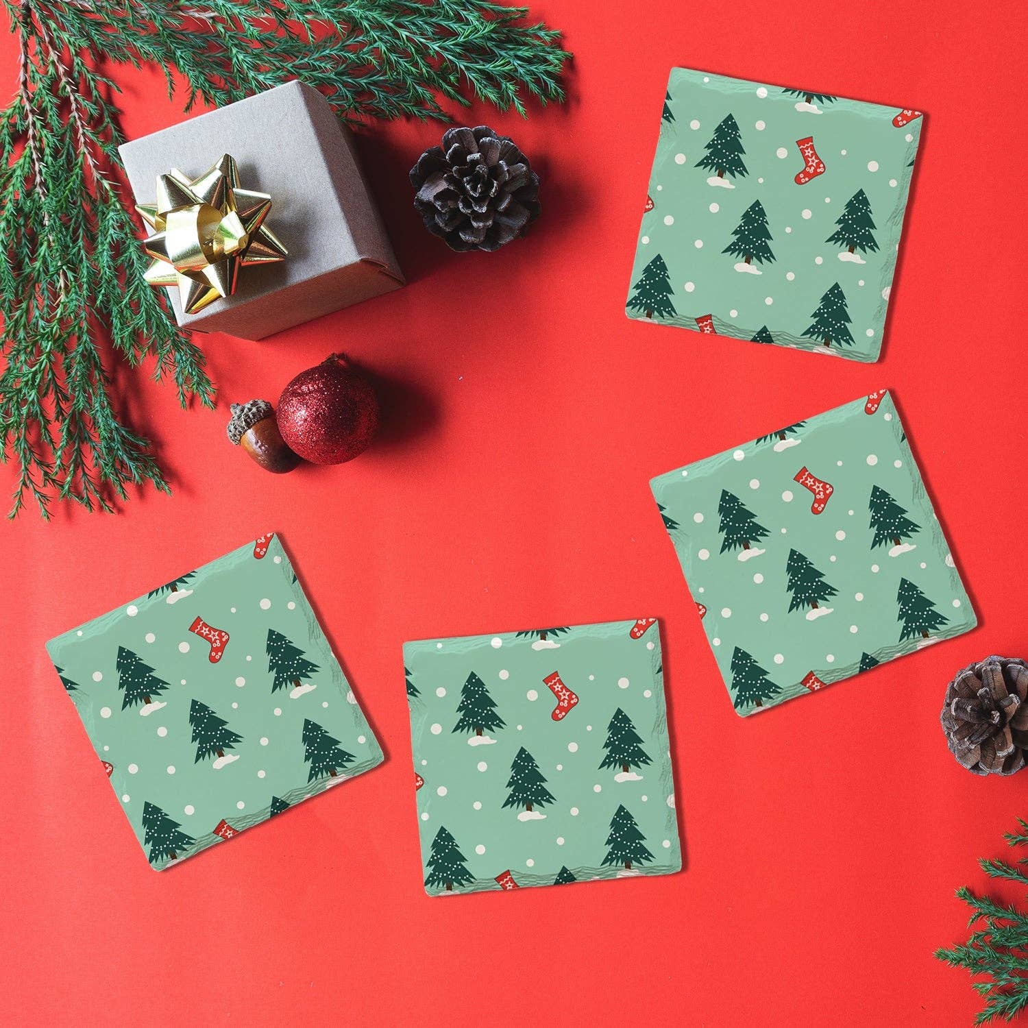 Ensemble de 4 sous-verres en acrylique Red Ribbon Tree en vente B2B