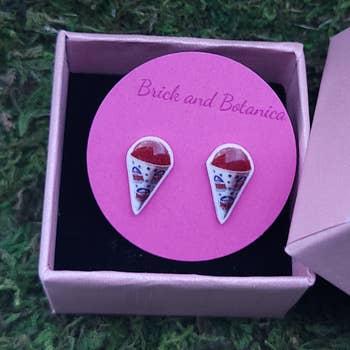 Le gâteau de Noël préféré de tous dans une boucle d'oreille à tige. Votre nouveau best-seller des fêtes ! Taille d'environ 0,63 po