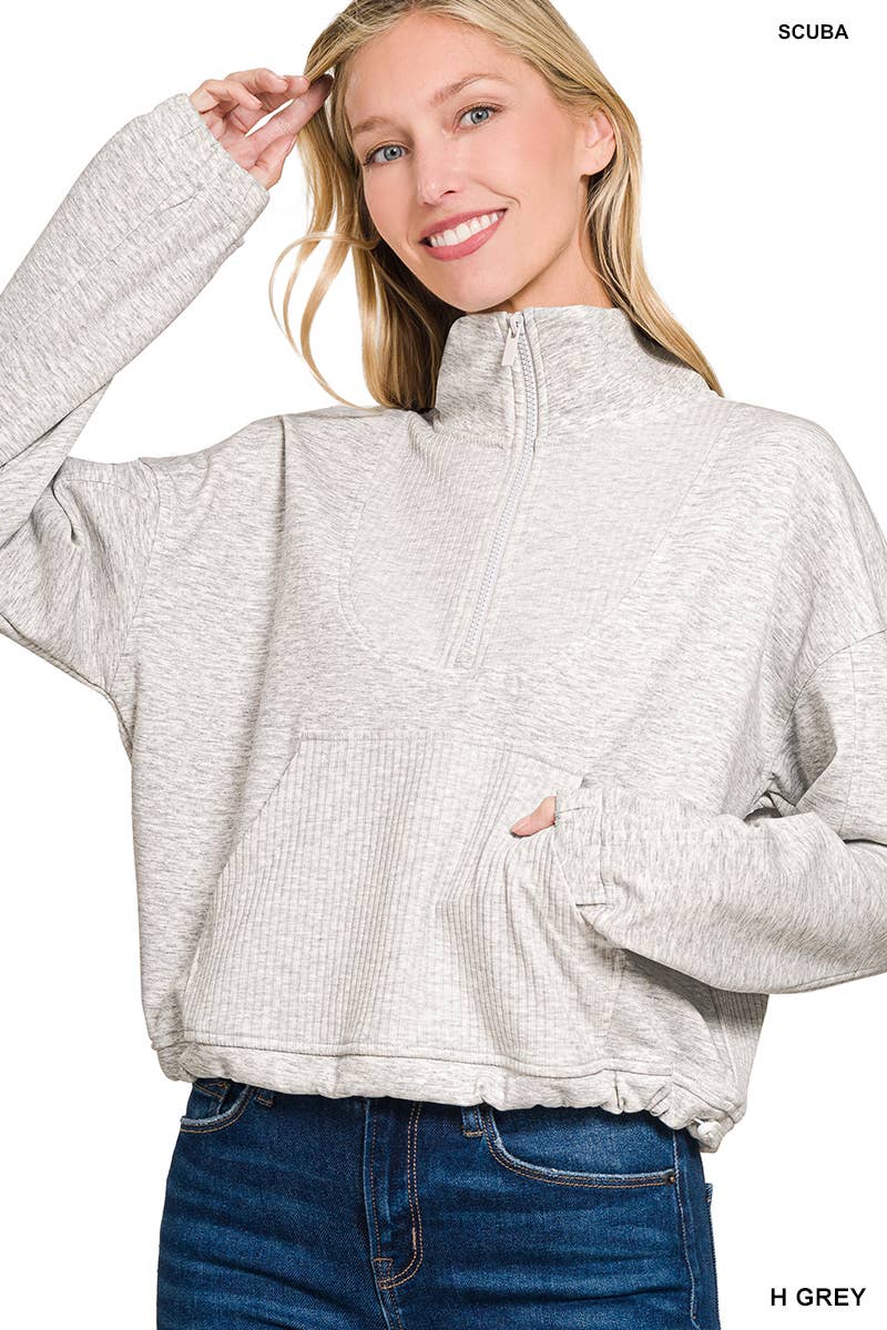 PULL-OVER À QUART DE ZIP EN MODAL SCUBA AVEC TUBULURE