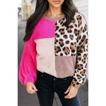 Haut en maille côtelée à manches à volants et patchwork floral d'automne (S-4X) en vente B2B