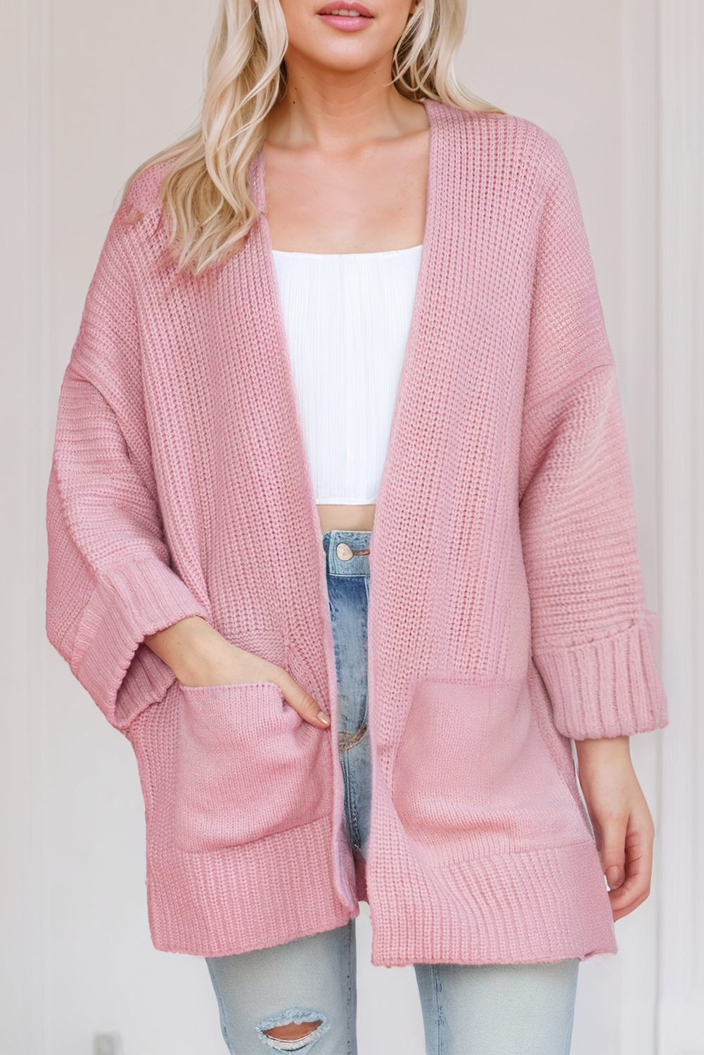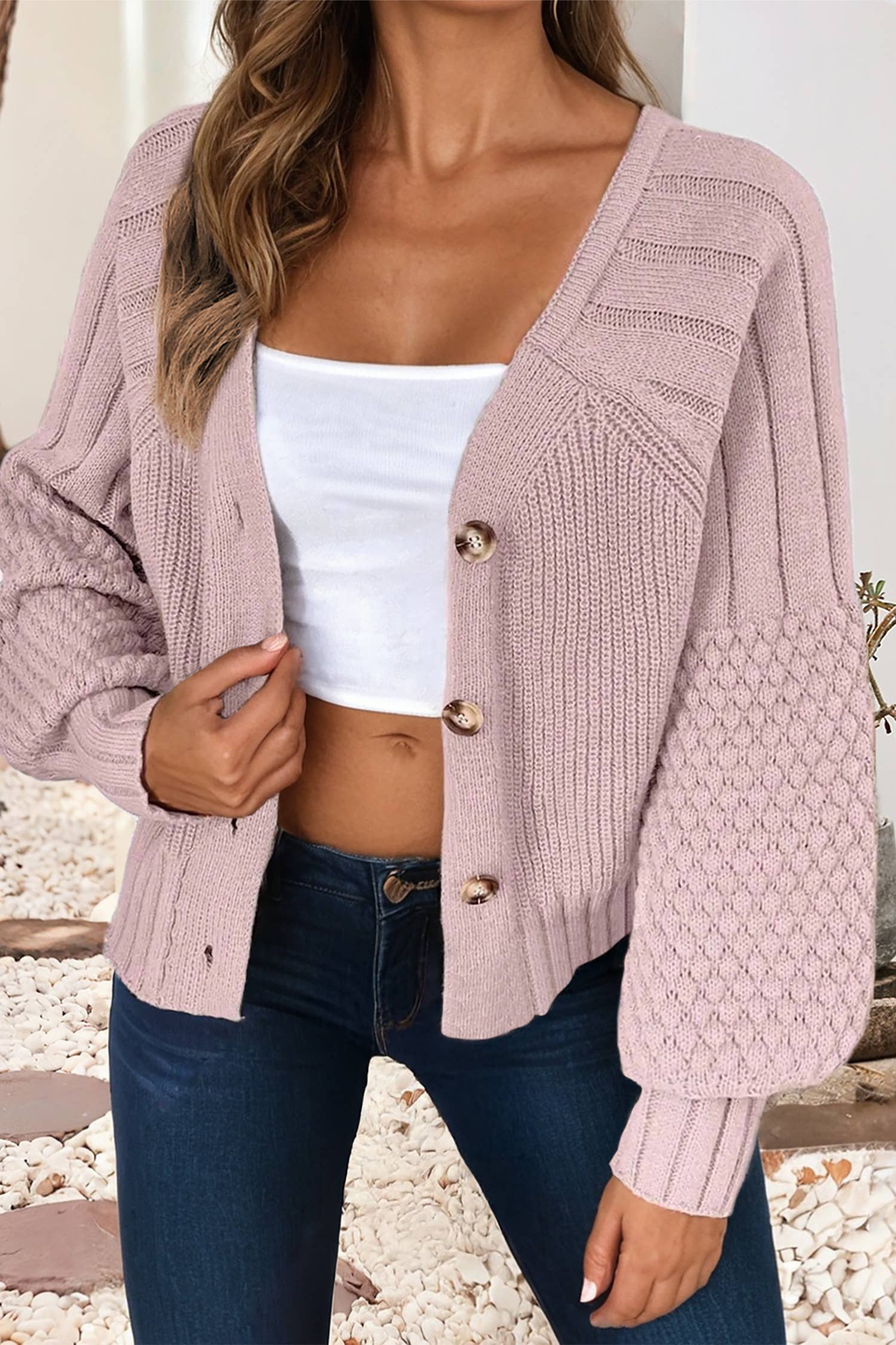 Cardigan léger en maille à col en V festonné pour femme en vente B2B
