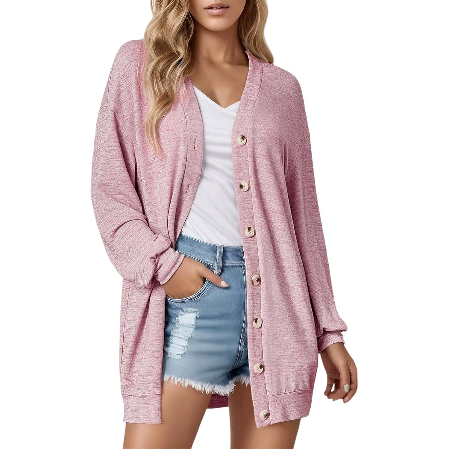 Prêt à expédier / Expédition accélérée Le bord festonné élégant et la silhouette élancée donnent à ce cardigan à col en V un look doux et féminin, parfait pour superposer sur des débardeurs ou des robes. Fabriqué à partir d'un mélange respirant de soie glacée et de coton, le tissu est lisse et frais contre la peau, idéal pour le printemps et l'été. Doté d'une fermeture à boutons complète et de poignets et ourlet côtelés, offrant un ajustement sûr mais flexible, facile à habiller ou à décontracter. Ce cardigan léger à manches longues se marie facilement avec des jeans, des jupes ou des shorts. Parfait pour les journées décontractées, les superpositions au bureau ou les sorties détendues du week-end. Disponible en plusieurs tailles, y compris S, M, L et XL, conçu pour flatter différentes morphologies avec un ajustement confortable et élégant.