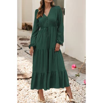 Robe maxi à manches longues pour femme taille smockée verte grande taille standard et pratique Robe longue à manches longues pour femme taille smockée verte