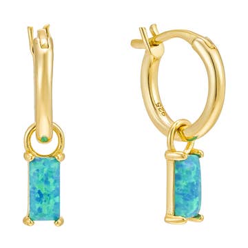 Créoles à charnière en argent sterling plaqué or 14 carats avec zircone cubique turquoise de 12 mm avec fermeture à clic sans fin.