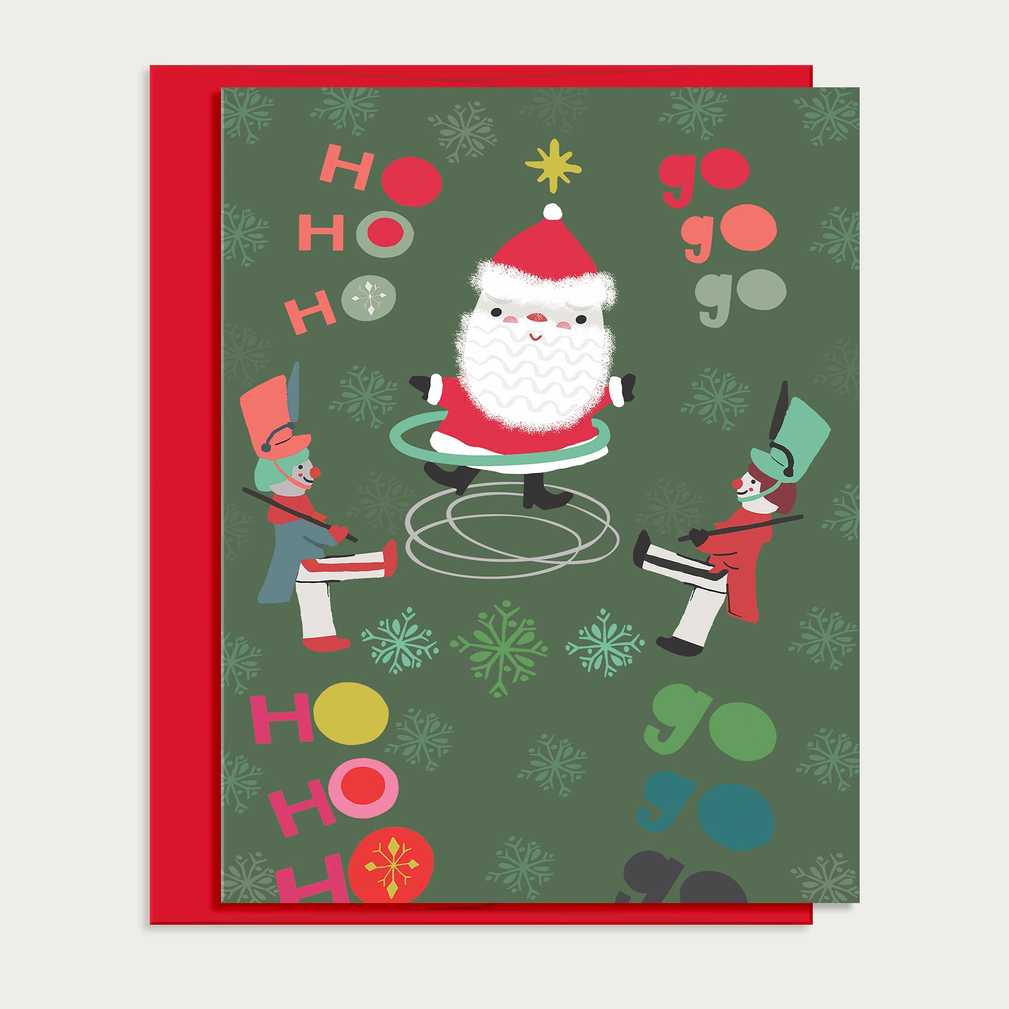 Carte faite à la main "Sleigh Bells Ring" avec traîneau rouge et cadeaux sur papier de fond vert Taille A2 Livrée avec enveloppe et cellophane Intérieur vierge