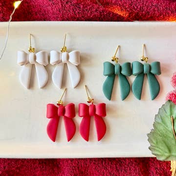 Boucles d'oreilles faites à la main en pâte polymère. Toutes les boucles d'oreilles Sparkl + DOT sont extrêmement légères, hypoallergéniques et fabriquées avec des matériaux de qualité. Ces sapins de Noël roses mesurent environ 1 1/4 de pouce de long et sont livrés avec un faux demi-cerceau orné de détails en fausse perle.