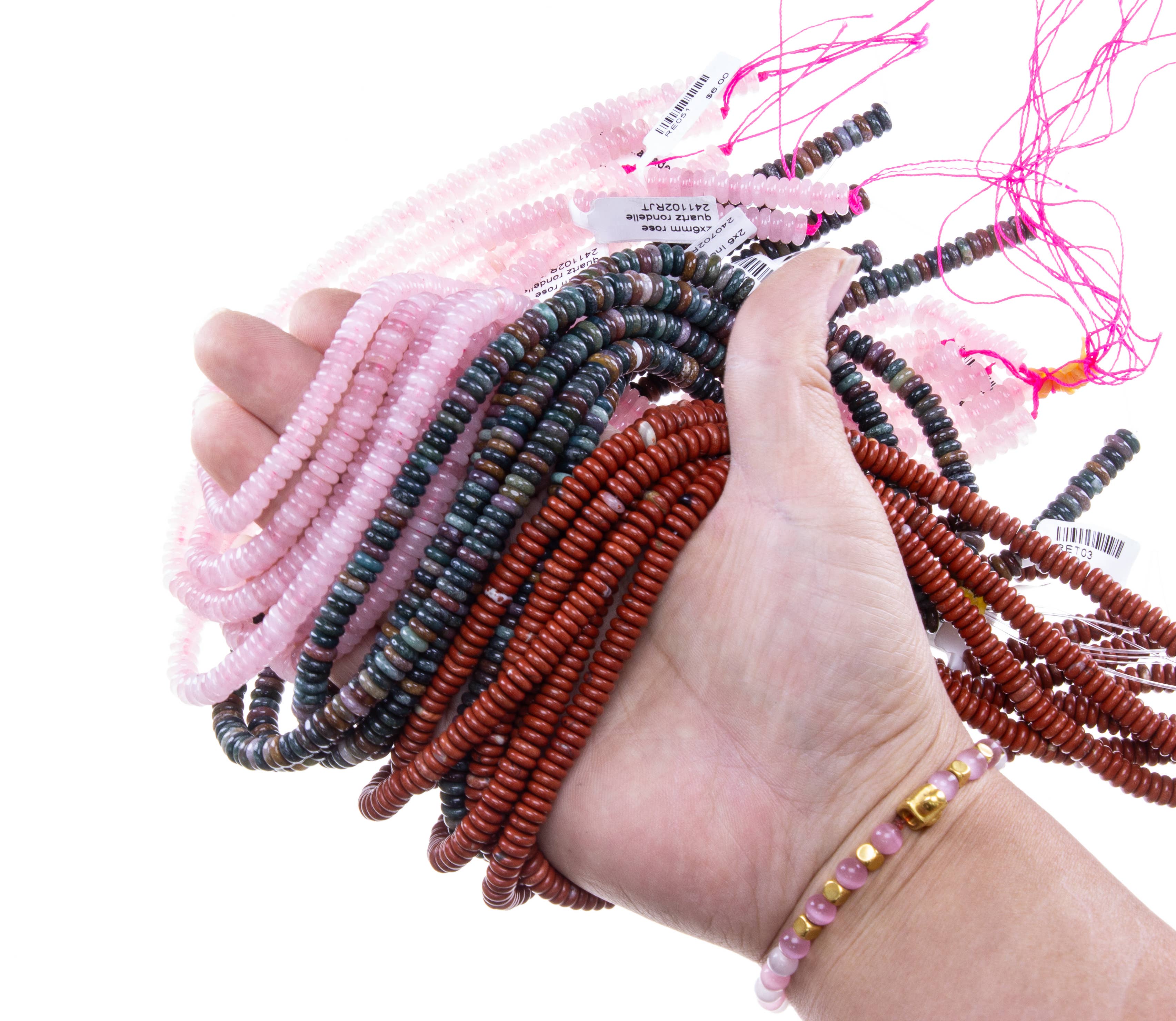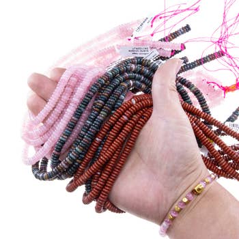 Perles de taille de 127 cm de long, fabriquées avec des fils de qualité. Perles à nouer vendues en gros et expédiées du Ghana.