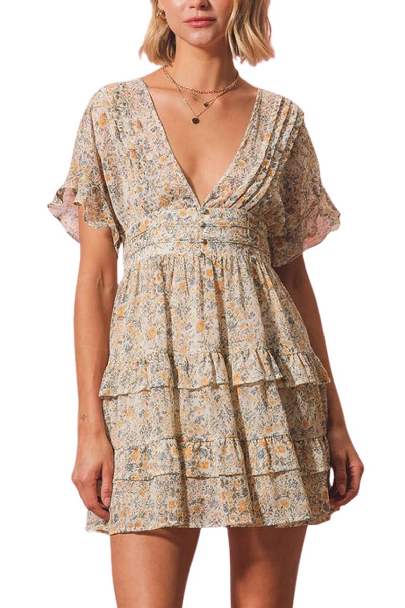 Notre robe en lin Lorelei présente des manches bouffantes et un ourlet à volants.
