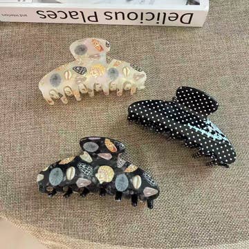 Caractéristique : * Mignon, Doux * Pois * Bloc de Couleur * Multi-Forme à Choisir * Léger * Bonne Prise * Simple, Polyvalent, Délicat * Ajustement Quotidien * Cadeau Poids : * 10-30g Matériau : * Acrylique Emballage : * L'emballage comprend 1 pince à cheveux. Remarque : * Évitez une Force Excessive : Lors de l'utilisation de la pince à cheveux, évitez de la tirer ou de la tordre trop fort pour éviter toute casse ou dommage au matériau en acétate. * Gardez au Sec : Bien que cette pince à cheveux soit conçue pour un usage quotidien, évitez de l'exposer à une humidité excessive. L'eau peut affecter les strass et affaiblir l'adhésif. * Manipulez avec Précaution : Évitez de faire tomber la pince ou de la soumettre à un impact, car cela pourrait desserrer les strass ou fissurer l'acétate.
