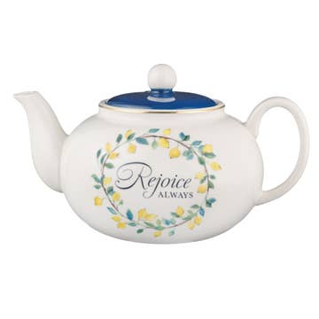 Le service à thé 3 pièces pour un est fabriqué en céramique de haute qualité. La tasse à thé qui se trouve au bas de la pile mesure 10 oz. La théière elle-même est un récipient de 14,5 oz. Le couvercle est doté d'un petit rebord pour le maintenir stable sur le dessus. L'ensemble de tasses à thé Meadows of Joy « Le bonheur est une tasse de thé » possède un corps et un dessus brillants ornés d'un autocollant à motif de fleurs sauvages. Les poignées de la tasse et de la théière permettent de servir et de verser facilement. Le magnifique motif floral entoure la tasse à thé texturée côtelée, à l'exception de la poignée et de l'intérieur de la tasse, qui est crème. La théière présente également une texture côtelée et est surmontée d'un couvercle bleu pâle. Le lavage à la main est recommandé. Passe au lave-vaisselle et au micro-ondes.