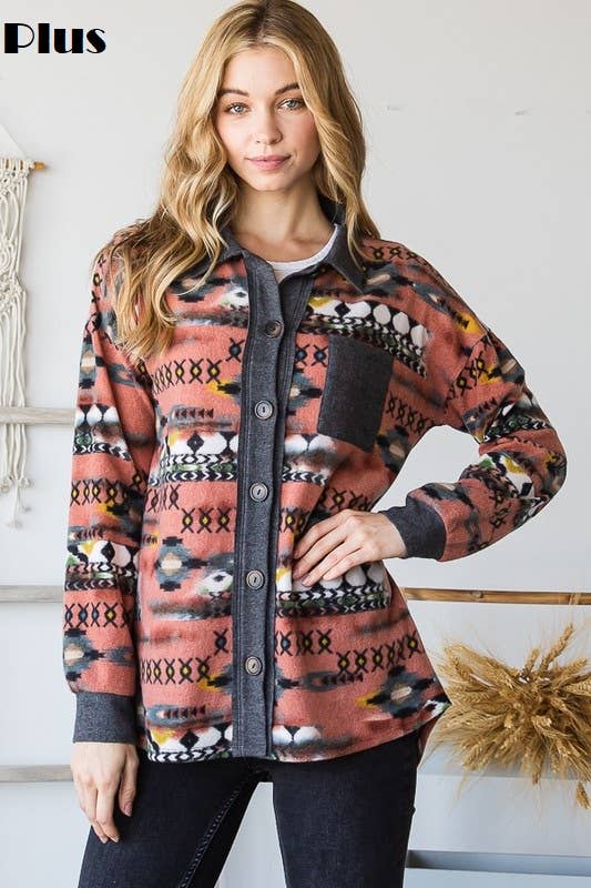 Préparez-vous à élever votre garde-robe d'automne avec notre surchemise Ruby ceinturée à imprimé aztèque ! Cette pièce élégante est la combinaison parfaite d'une chemise et d'une veste, idéale pour les journées fraîches d'automne. L'imprimé aztèque unique ajoute une touche de couleur amusante à n'importe quelle tenue.
