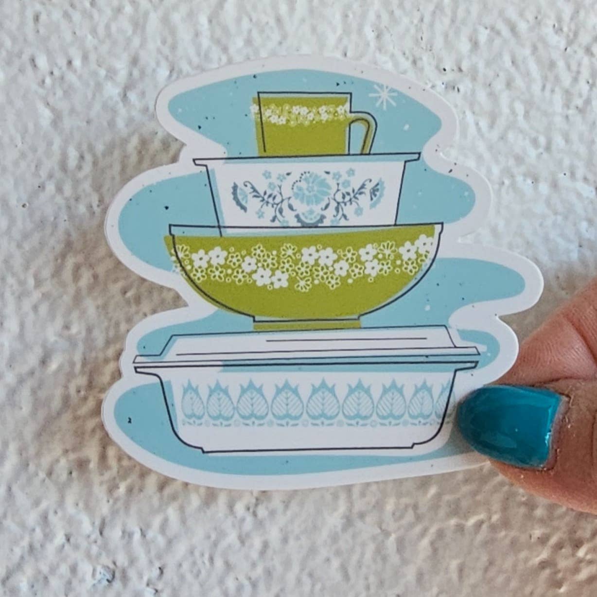 Ensemble de bols en pyrex bleu floconneux de neige vintage conçus sur mesure avec autocollants et aimants ! Ces autocollants durables sont parfaits pour l'extérieur ou l'intérieur, ils sont amusants, flexibles et éclatants. Un excellent ajout à tout ordinateur portable, bouteille d'eau ou camping-car ! Si vous êtes une femme amoureuse des antiquités ou une fille de glamping, ces autocollants vous apporteront le plaisir des roulottes vintage où que vous alliez ! 💪🏼 Durabilité : les autocollants sont résistants aux intempéries, imperméables et capables de résister à l'exposition au vent, à la pluie et au soleil. Ils résistent à la décoloration, aux rayures, aux déchirures et à l'eau ; et passent même au lave-vaisselle ! Fabriqué avec du vinyle et de l'adhésif de haute qualité, pour que vos autocollants restent solides et restent en place ! 📎 Taille : 3 X 2,86 pouces 🖋 Design : autocollant mat de haute qualité avec un design découpé à la forme sur du vinyle de haute qualité 📍 Production : Conçu et produit aux États-Unis, créé avec Apple Procreate sur Ipad Pro 2020. Le design graphique met l'accent sur un style rétro/vintage lumineux, coloré et intemporel.
