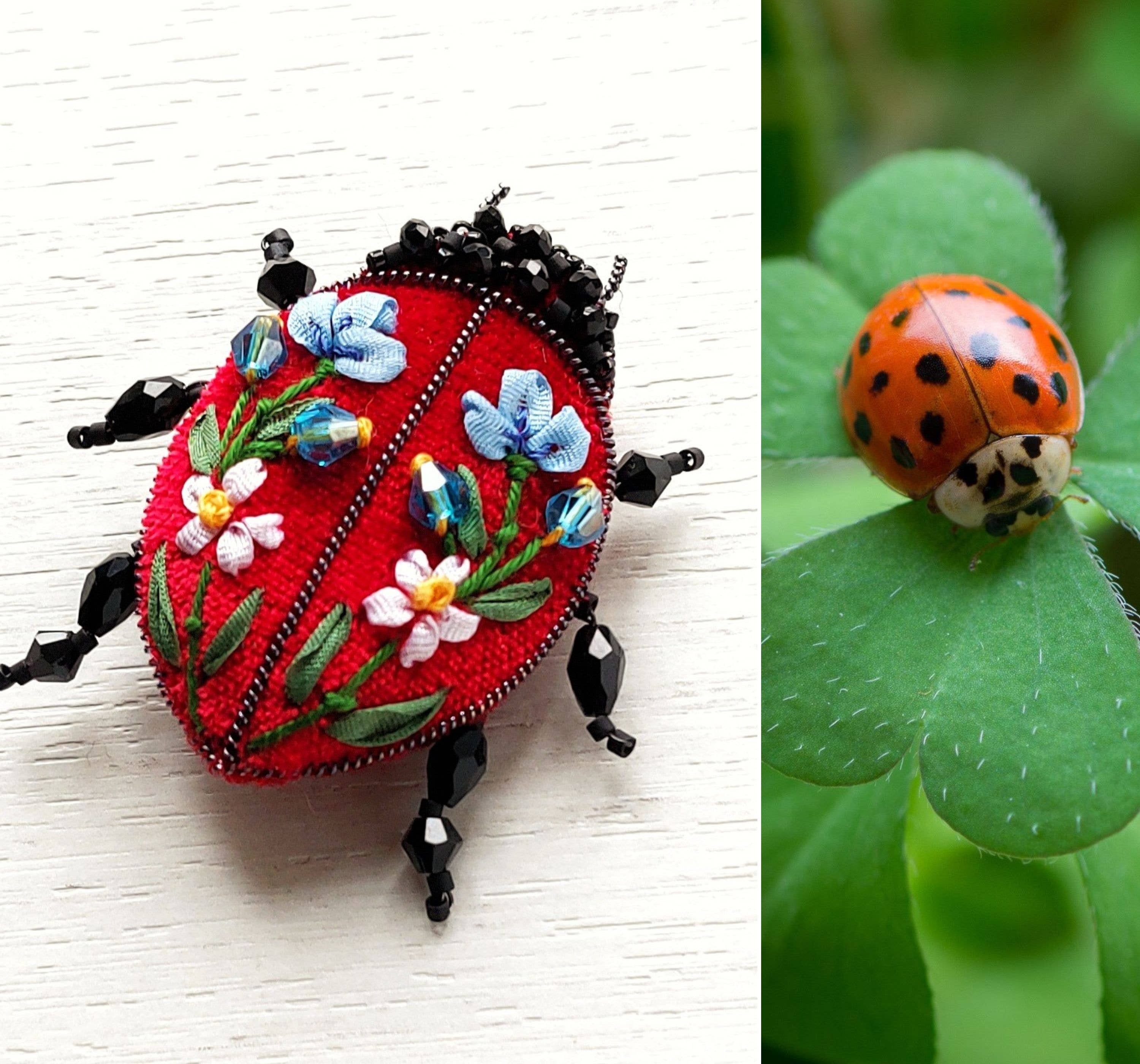 Découvrez notre broche unique en velours en forme d'insecte, méticuleusement réalisée avec une broderie à la main. Parfaite pour les passionnés d'insectes et les amateurs de papillons, cette pièce charmante est une merveilleuse option de cadeau. ♦ Chaque broche scarabée est délicatement brodée sur un tissu en velours avec des rubans de 4 mm, agrémentée de fils, de perles et de fil français. ♦ Veuillez noter que les couleurs de mes pièces peuvent légèrement varier en raison des différents calibrages d'écran. ♦ Les bijoux ne doivent pas être exposés à l'eau et aux produits chimiques ménagers. ♦ Délai de livraison estimé : États-Unis - 10-18 jours ouvrables Royaume-Uni - 12-18 jours ouvrables Europe - 12-18 jours ouvrables Canada - 18-35 jours ouvrables Australie et Nouvelle-Zélande - 21-30 jours ouvrables Autres pays - 18-35 jours ouvrables
