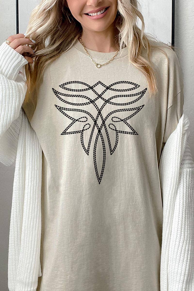 T-shirt graphique motif couture bottes style cowgirl