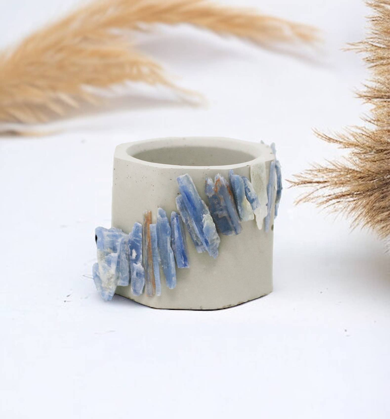 Pot de plante en ciment avec cristal de quartz clair