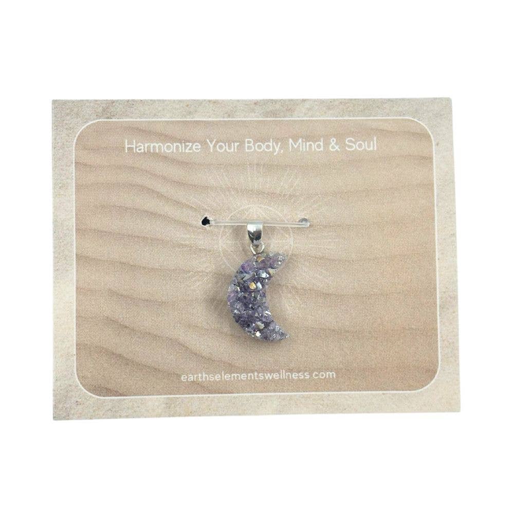 Ce petit pendentif en forme de lune améthyste Druzy de 0,05 pouce en argent sterling est un ajout magnifique à votre collection de pendentifs. L'améthyste ouvre la conscience spirituelle et l'intuition. Il aide à éloigner les émotions négatives en attirant l'énergie positive.
