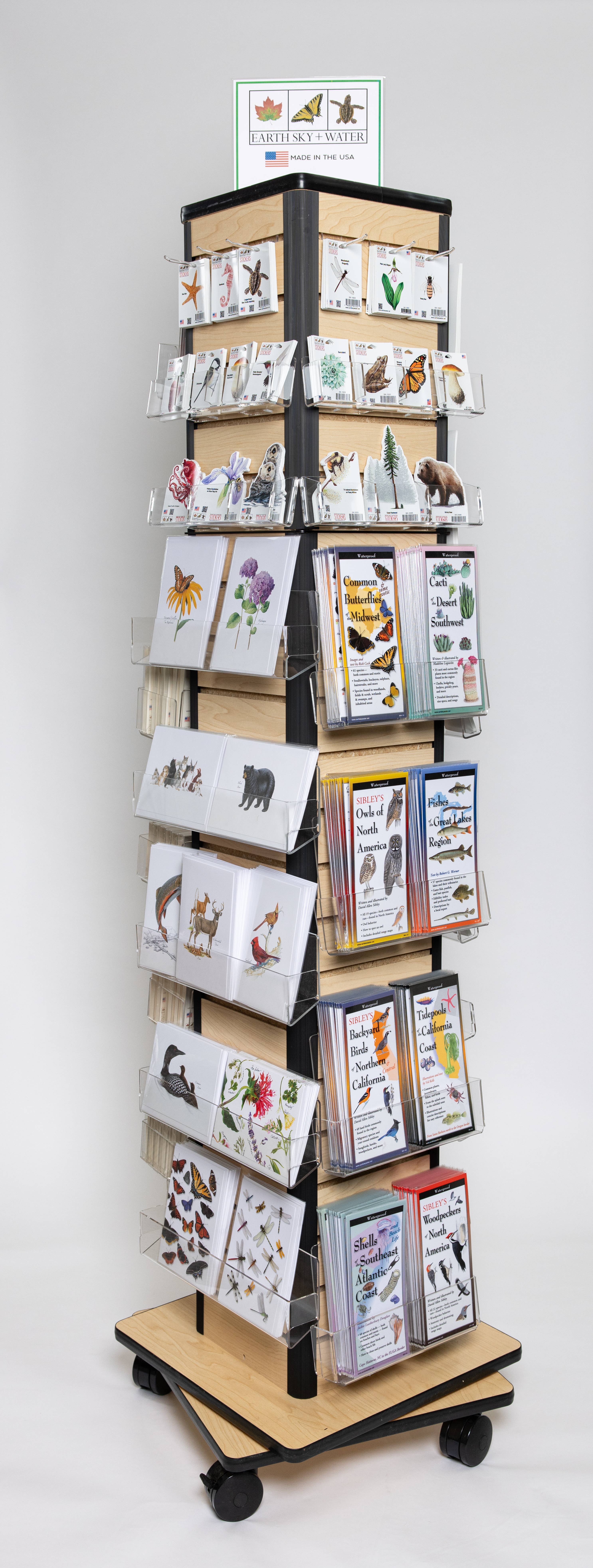 Présentoir de cartes de vœux à 48 compartiments rempli de demi-douzaines de nos cartes de vœux les plus vendues illustrées par Louise Mulgrew Ce présentoir au design contemporain prend peu de place et est équipé de roulettes verrouillables pour une mobilité facile dans votre magasin. 48 demi-douzaines de cartes = 619,95 $ Présentoir à 48 compartiments = 275 $ Frais de livraison directe du présentoir = 60 $ 11 demi-douzaines de cartes en compensation (valeur au détail de 275 $) = Gratuit ! Total = 954,95 $ Par défaut, nous remplirons le présentoir avec les cartes les plus vendues, les occasions étant représentées par popularité. Nous sommes heureux de personnaliser votre sélection. Envoyez-nous un message, un e-mail à orders@bielyshoaf.com, ou appelez-nous au 877-957-0940 (du lundi au vendredi, de 8h à 17h PST). • Présentoir fabriqué aux États-Unis. • 72" de haut x 22" de large • Comprend une enseigne Louise Mulgrew pour le sommet. • Le présentoir est fabriqué en plastique PETG transparent, polystyrène et panneau de particules pré-laminé. • Le présentoir est expédié séparément des cartes, le client paie le transport du présentoir. Veuillez noter que le présentoir peut être expédié uniquement aux États-Unis et au Canada.