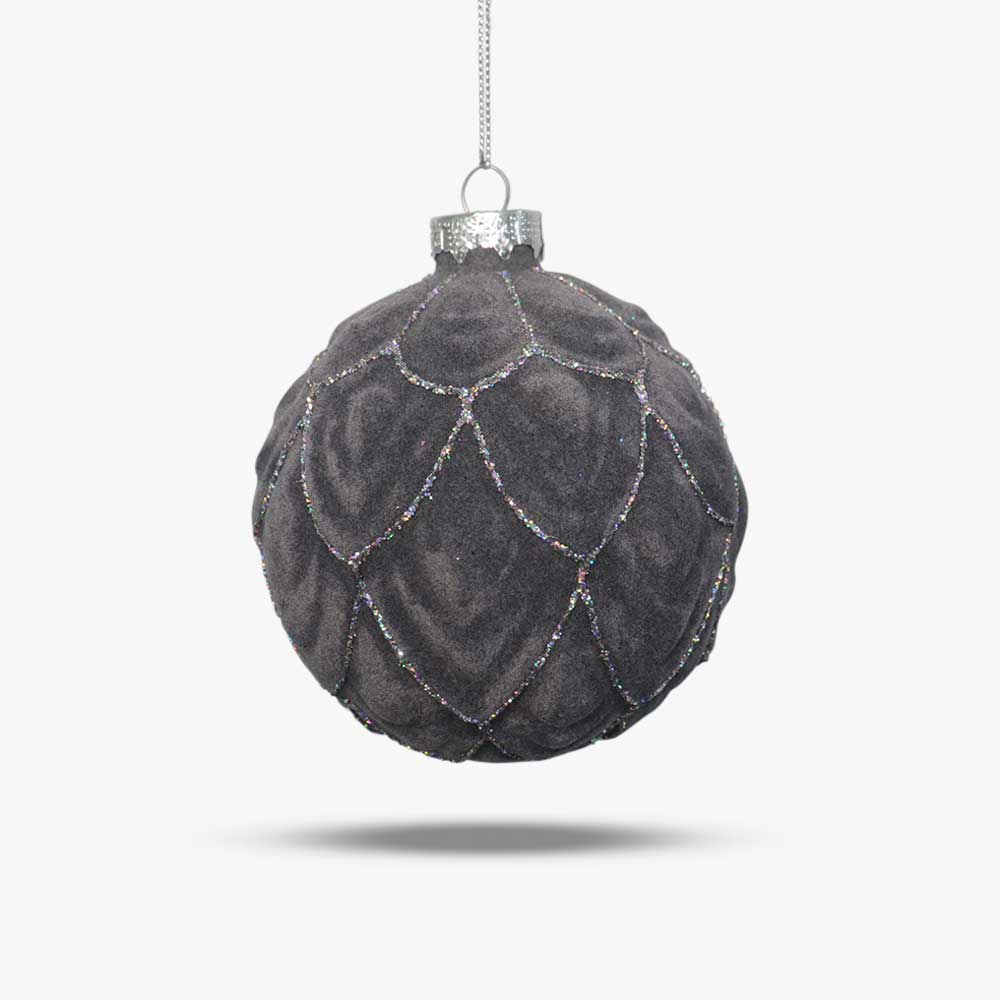 Présentation de l'Ornement en Verre Éclat Prune, une pièce luxueuse qui apporte une élégance festive à votre décoration de vacances. Fabriqué en verre scintillant, cet ornement rond présente une finition riche de couleur prune avec une texture veloutée, sa surface ornée de motifs délicats et tourbillonnants qui reflètent la lumière avec une lueur subtile et radieuse. De minuscules éclats de paillettes incrustés ajoutent une touche de magie scintillante, renforçant son charme opulent. Le capuchon argenté élégant de l'ornement et sa boucle dorée le rendent prêt à être suspendu, parfait pour orner un sapin de Noël, une guirlande ou une décoration saisonnière. L'Ornement en Verre Éclat Prune allie la beauté intemporelle du verre à un design sophistiqué aux tons de bijoux, en faisant un ajout exquis pour ceux qui chérissent la magie de l'élégance des fêtes.
