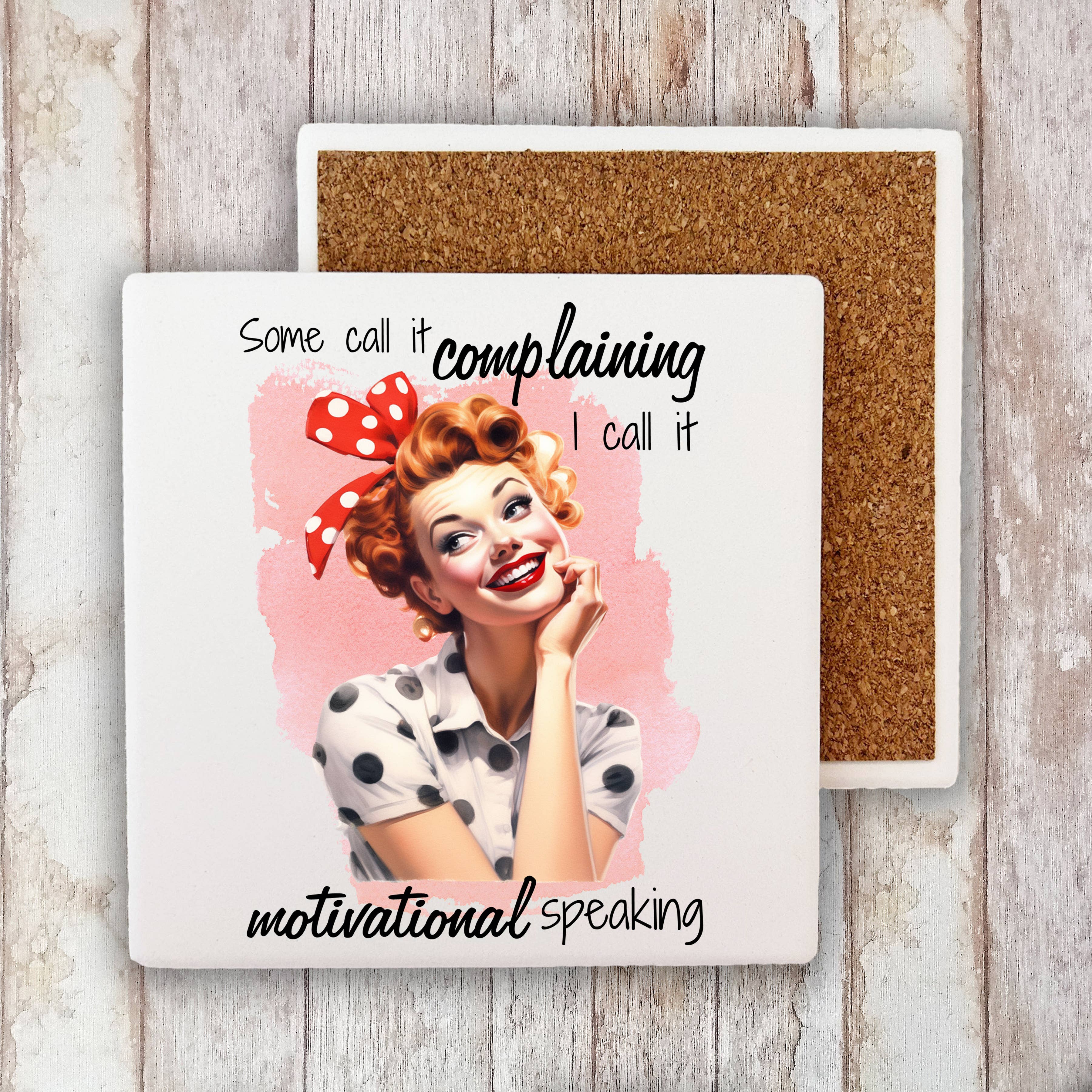 Notre collection à succès Polka Spots fera rire votre magasin avec des centaines de dictons hilarants pour tous les types d'humour. • Sous-verre en marbre roulé de 4 po x 4 po • Support en liège durable • Imprimé en permanence à l'aide de notre méthode exclusive • Ne tache pas et ne contient pas de moisissure • Fabriqué aux États-Unis