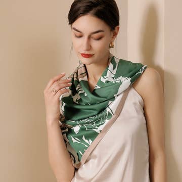 Écharpe/Foulard en coton et soie imprimé au bloc - Jardin de lotus en vente B2B