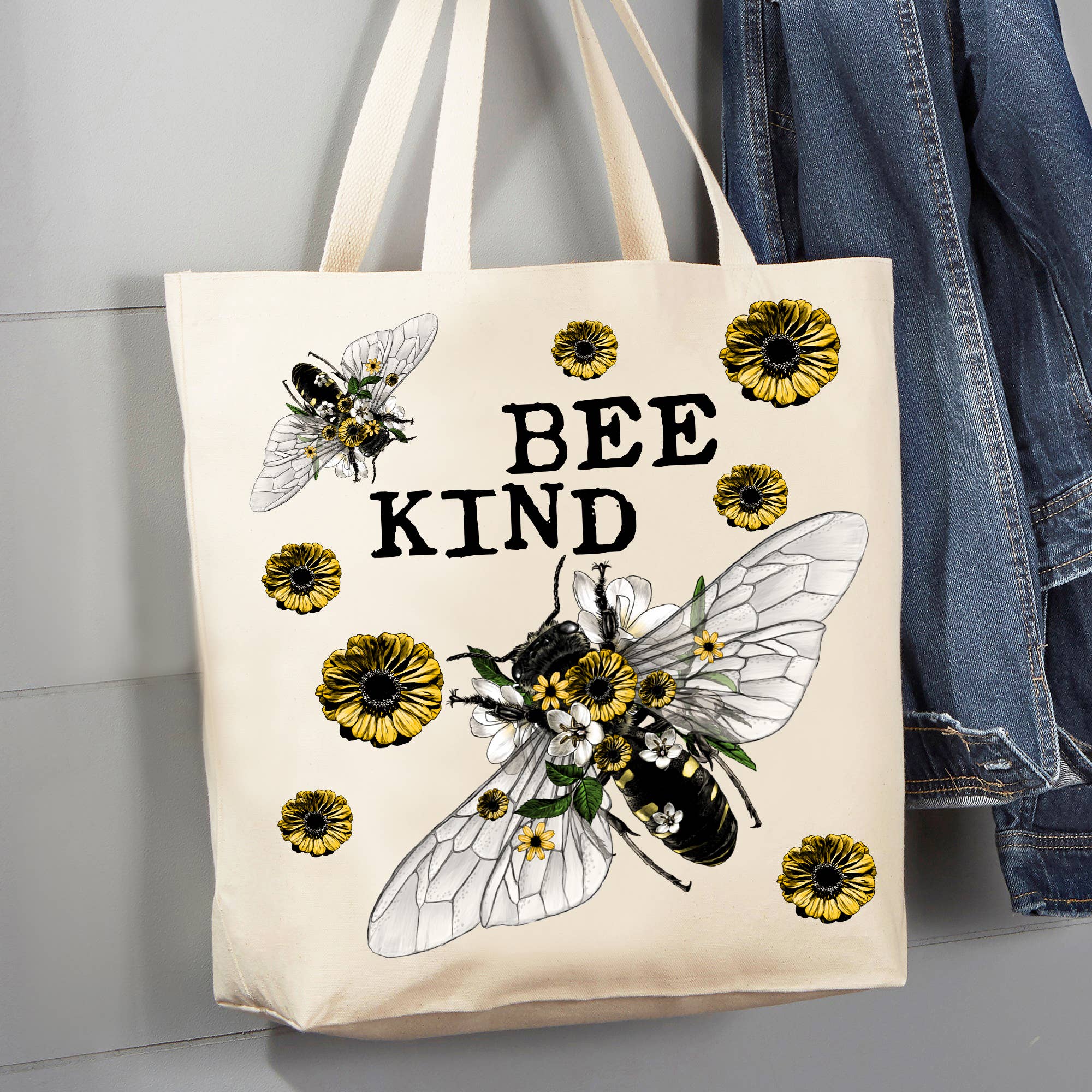 Sac fourre-tout en toile 12 oz avec motif abeilles vintage et fleurs en vente B2B