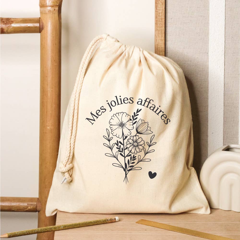 "Pochon école ♡ Découvrez le petit pochon en 100% coton pour ranger les affaires d'école, avec une fermeture à double cordon dans le même tissu. Nous mettons ""Mes petites affaires d'école"", avec des éléments d'école autour. Ce petit pochon d'école est très pratique pour y ranger les petits chaussons, des petites affaires pour les cours, les petits indispensables de votre enfant à l'école ou même chez la nounou. Dimensions : 24,5 x 29 cm (taille S)"