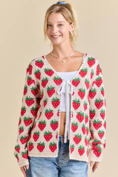 Gilet noué à motifs fraises