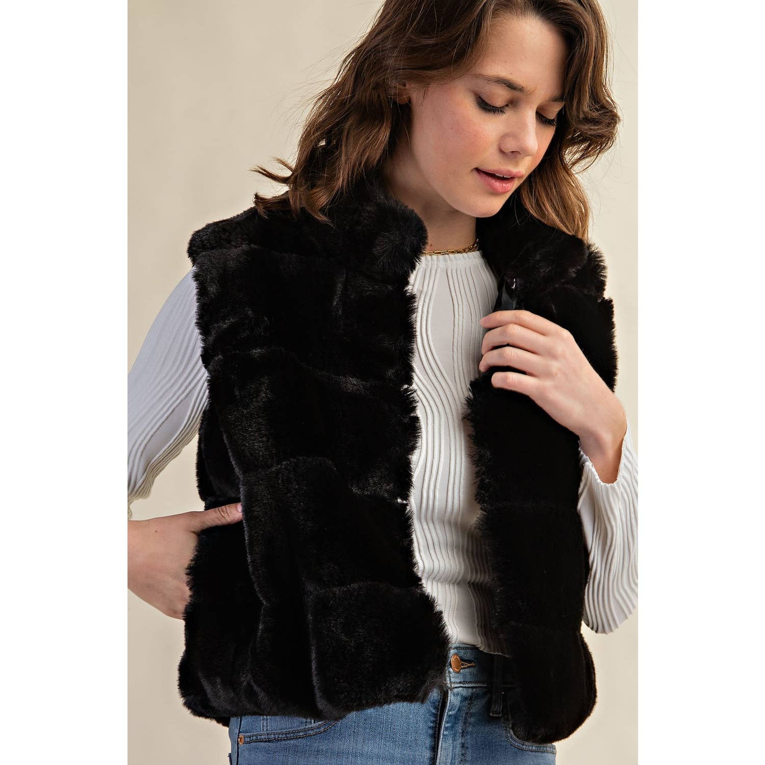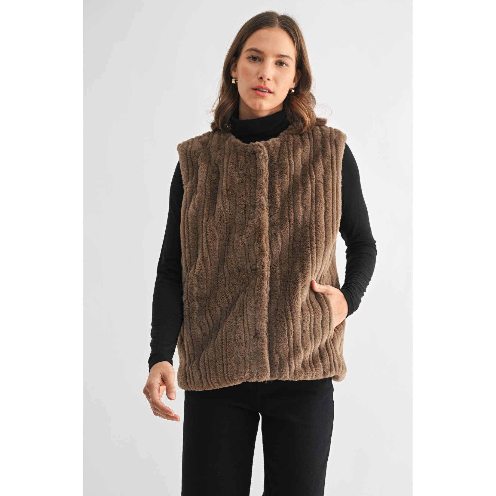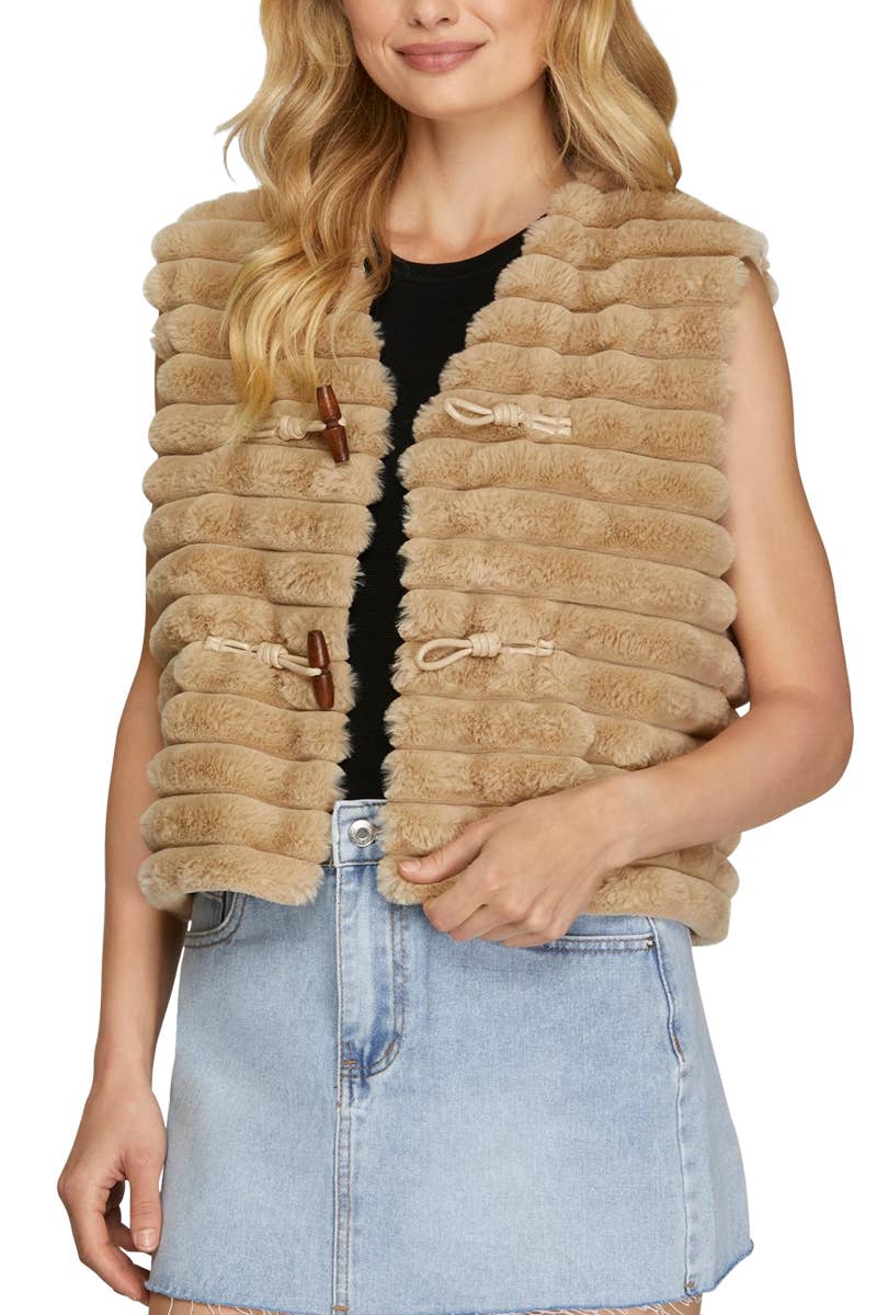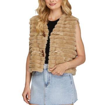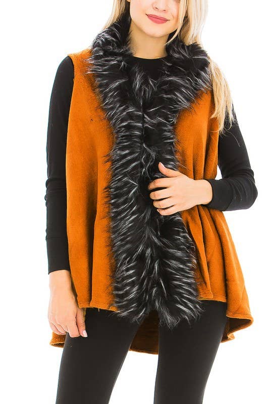 GILET OUVERT EN FAUSSE FOURRURE MARRON 25246 EN VENTE B2B