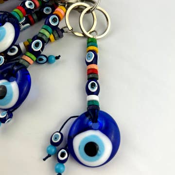 Porte-clés Evil Eye en bois fait main avec pierres en vente B2B