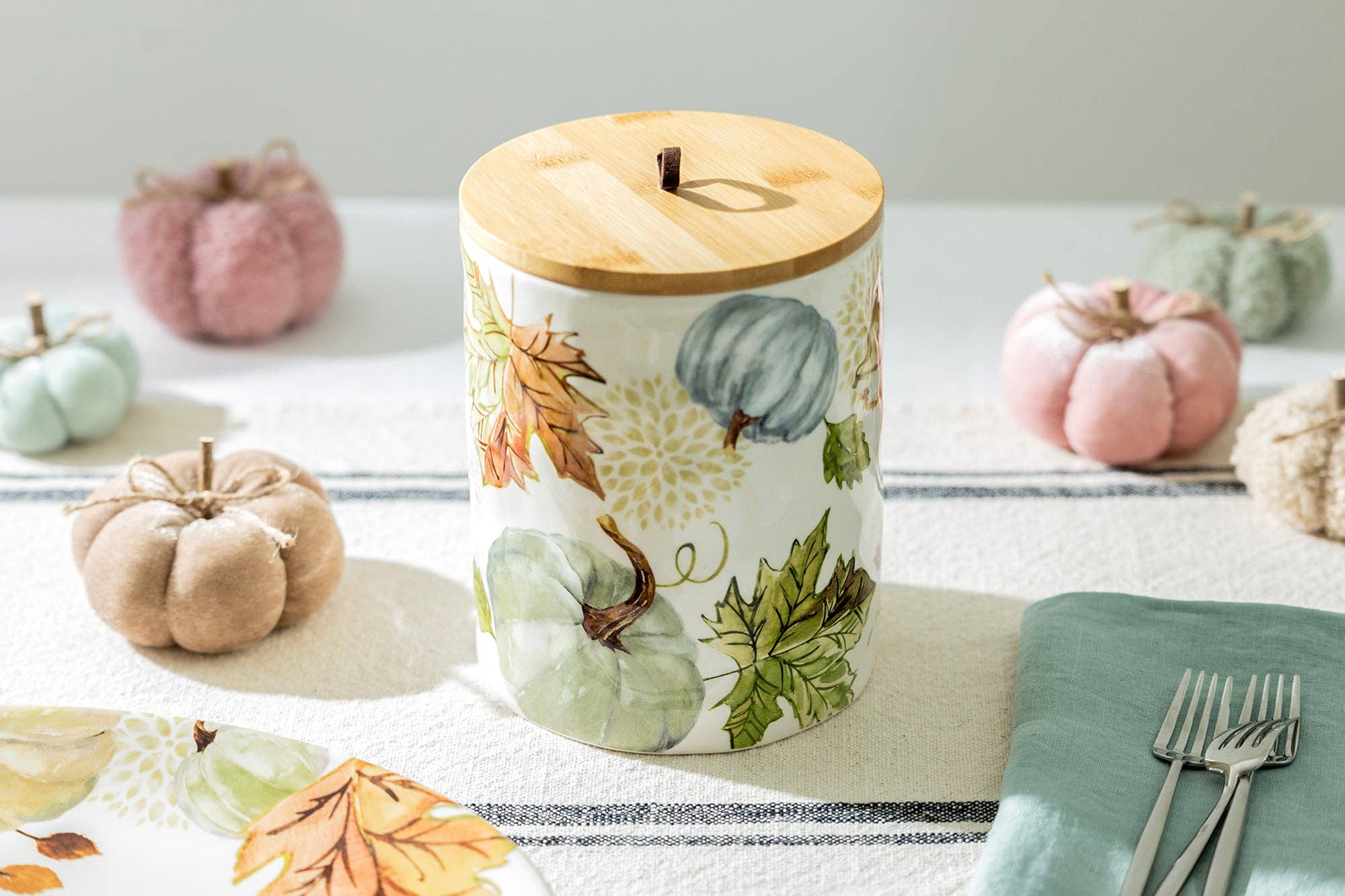 Assiette à dessert/salade 8,5" citrouilles d'automne avec feuilles en vente B2B