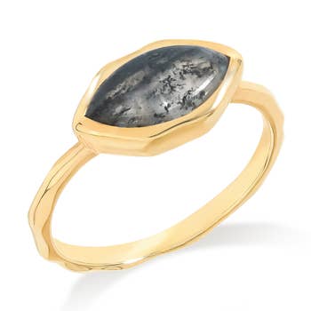 Bague ovale avec pierres précieuses dorées et argent - Apatite bleue (3 pièces)