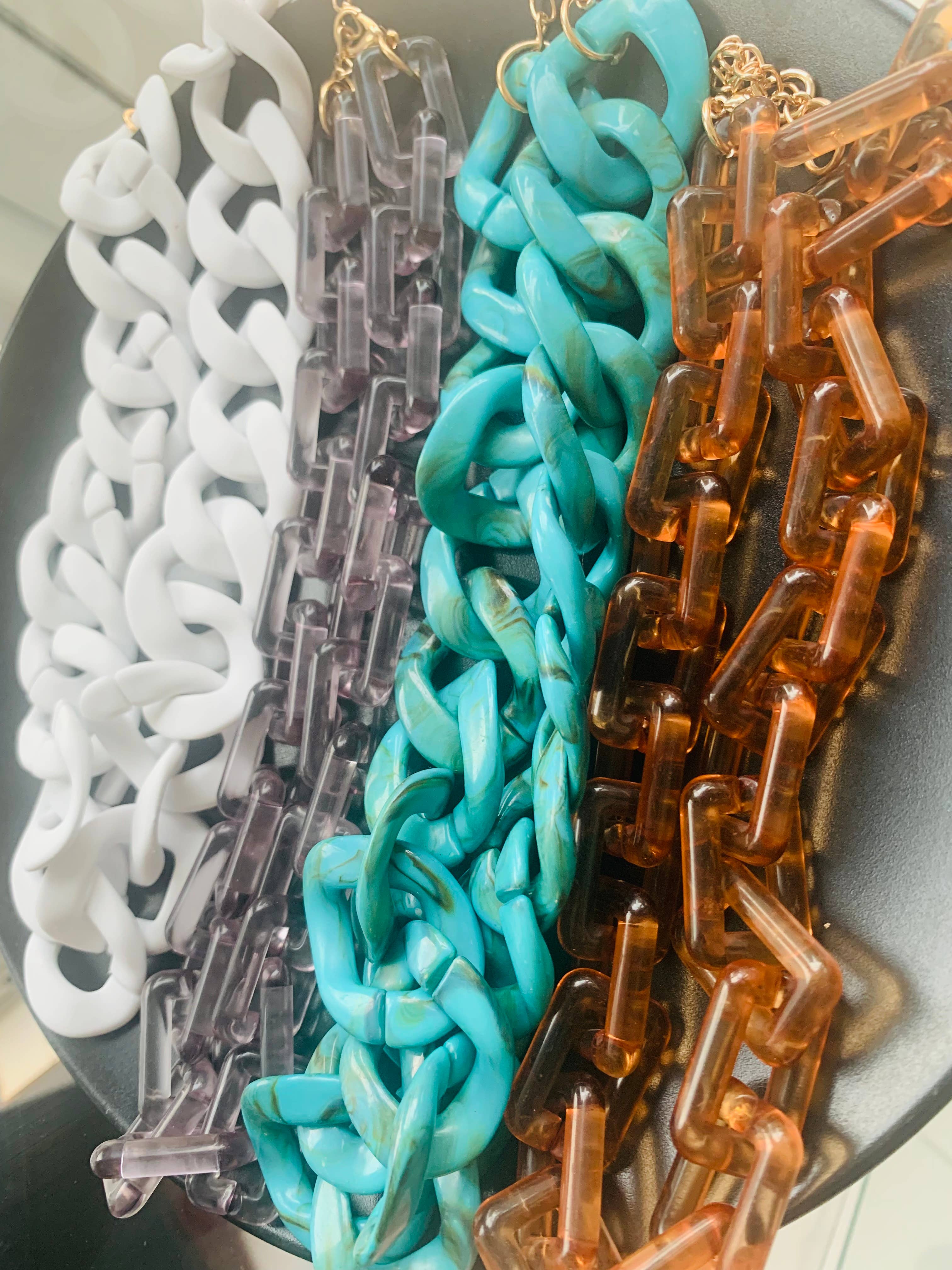 Collier chaîne à maillons plats style cubain en acrylique boho
