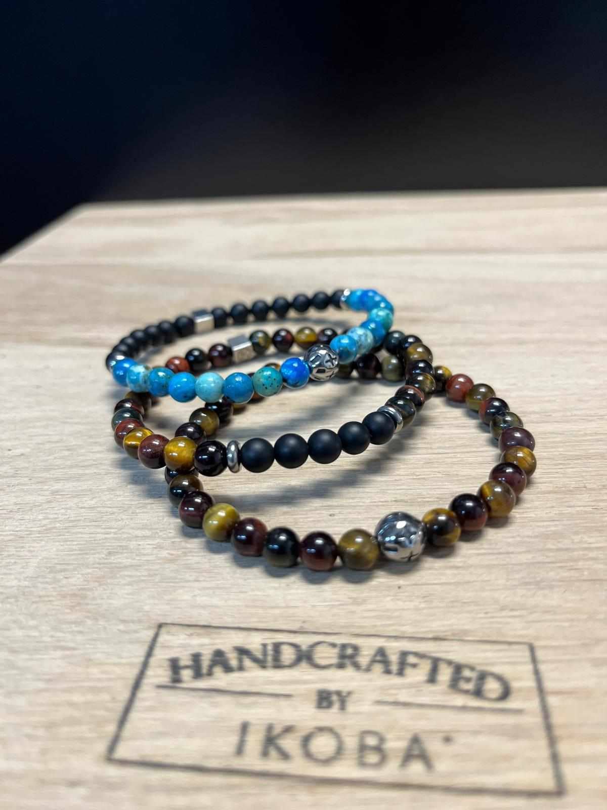 Bracelet en pierre de lave et pierre selon choix 8mm. Intercalaires motif Maori. Montage sur fil extensible ultra résistant pour un maximum de confort et un ajustement parfait. Nos bracelets sont confectionnés à la main dans nos ateliers en France. Chaque bracelet est unique de par l'utilisation de matière naturelle. Ce bracelet peut se porter seul ou en accumulation. Nos bijoux sont confectionnés avec des matières naturelles, ce qui peut occasionner de légères variations de couleur. Les images présentées sont indicatives et peuvent différer légèrement du produit réel. Taille M : 18.5-19cm Taille L : 20-20.5cm