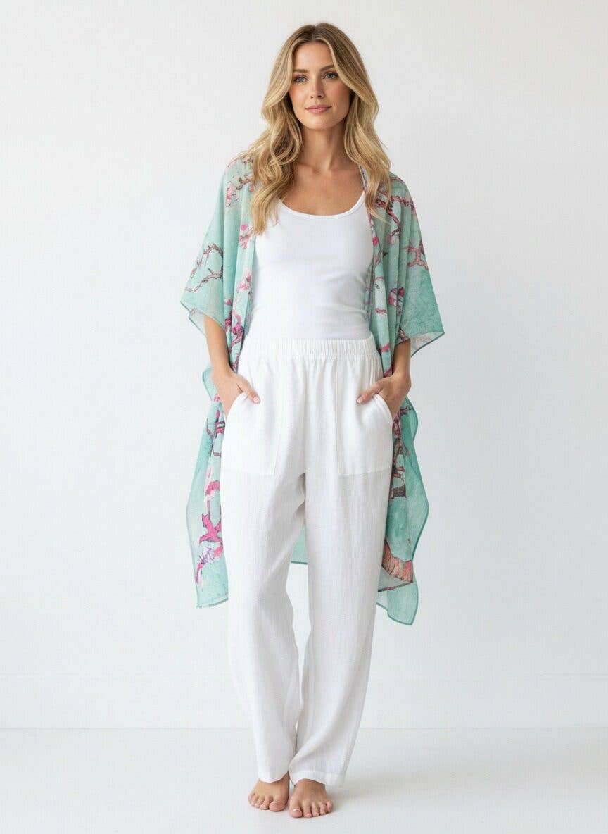 "Présentation de notre Kimono de Plage à Nouer Ombré ! Ce long kimono arbore un dégradé de tons froids avec un ourlet fendu et des franges décoratives, créant un kimono duster style volant. Le tissu est doux, léger et respirant, ce qui en fait un vêtement de plage confortable pour les journées de baignade ou une pièce de superposition prête pour le resort pour ajouter de la couleur à n'importe quelle tenue. Le lien facile à l'avant ajoute de la définition, lui donnant ce look de kimono à nouer à l'avant sans effort, en faisant un kimono d'été facile à porter tout au long de la saison. Matériau : 100 % Rayonne Fabriqué en Inde"