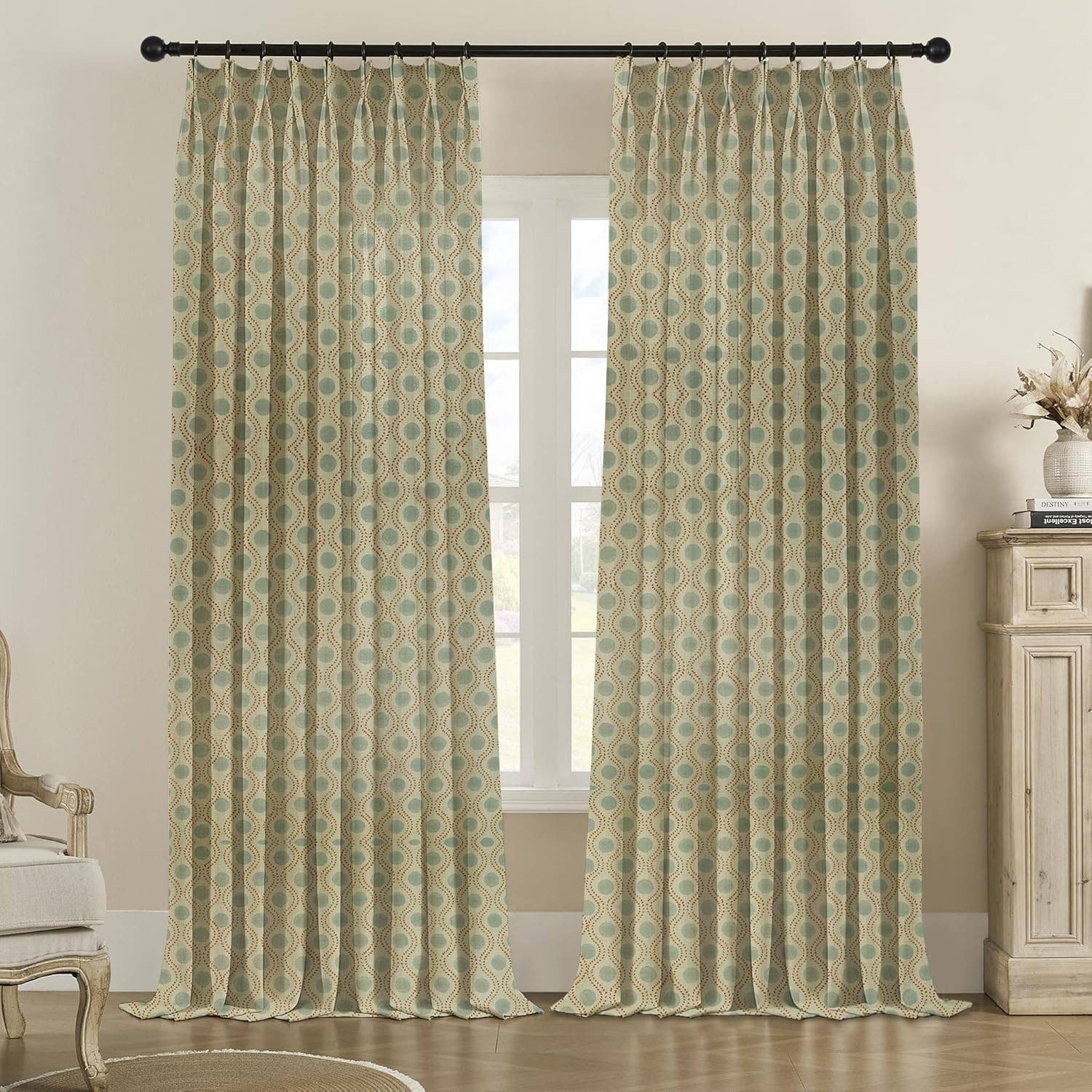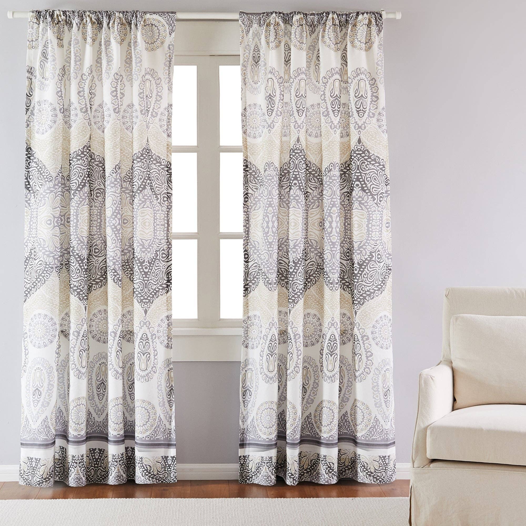 Panneaux à œillets Izmir Face : 100 % coton imprimé Entièrement doublé avec un tissu poly-coton de couleur naturelle De plus, les panneaux à œillets sont mesurés et vendus par paire Taille de la paire : 96" de large x 84" de long Taille du panneau : 48" de large x 84" de long - 2 panneaux par paire De plus, les panneaux sont conçus pour fonctionner avec des fenêtres de taille standard dans les chambres, les salles à manger et le salon Les œillets sont placés à 0,5" du haut des panneaux (la tête est incluse dans la longueur indiquée) Les panneaux ont des œillets de 1,5" conçus pour être utilisés avec une tringle de 0,5 ou 1 pouce Nettoyage : nettoyage à sec uniquement De plus, nous fabriquons fièrement chaque article un par un dans notre État d'origine, la Géorgie, aux États-Unis. (à partir de tissus nationaux/importés) Nous fabriquons nos panneaux à œillets Izmir à partir d'un matériau en coton imprimé de haute qualité, 100 % coton, qui est durable et facile à entretenir. De plus, les panneaux présentent un design à œillets en haut, ce qui les rend faciles à accrocher sur n'importe quelle tringle à rideau standard. De plus, nous concevons nos œillets pour offrir un look propre et moderne...