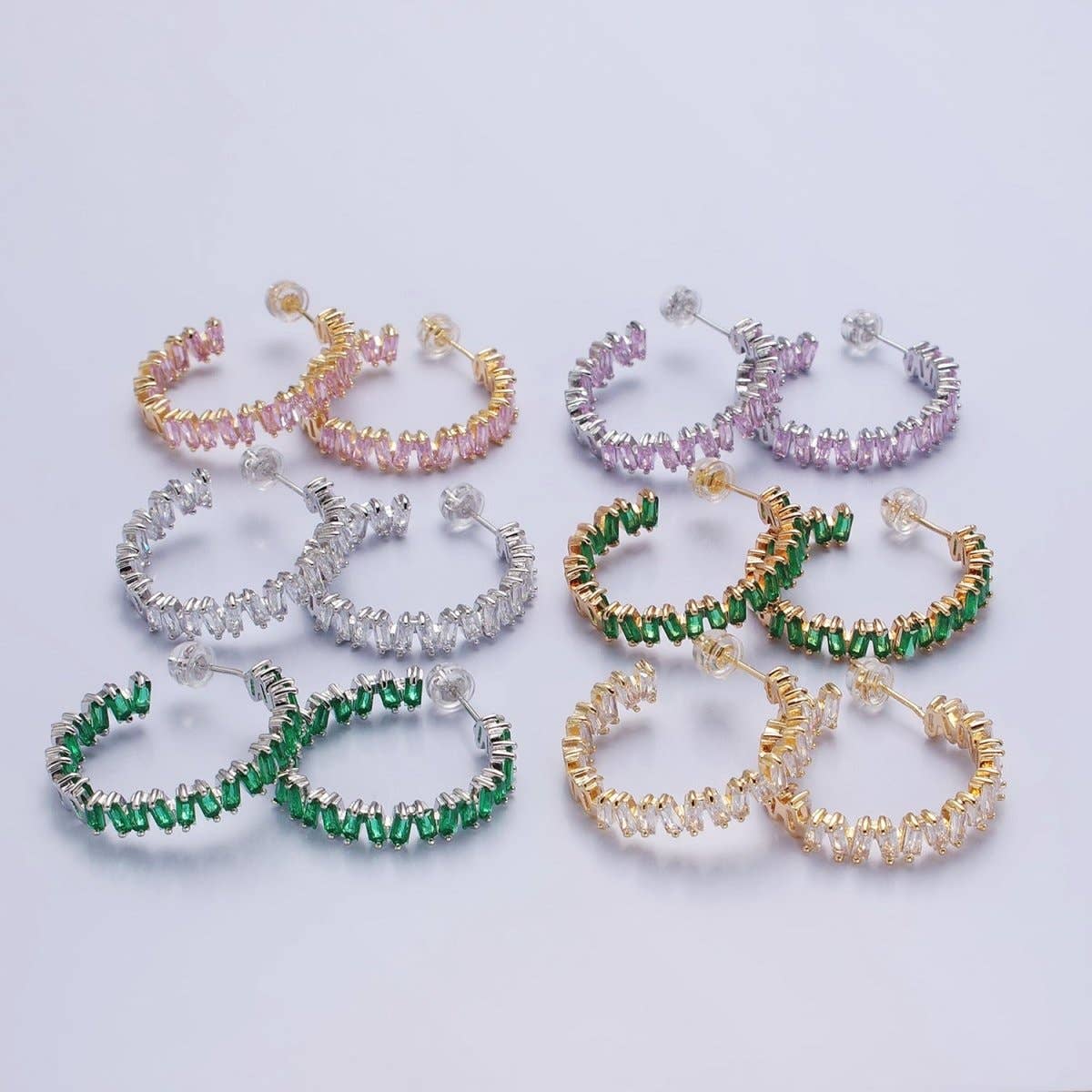 Ensemble de boucles d'oreilles créoles en or de 15 mm avec lunette géométrique en zircone cubique P181 en vente B2B
