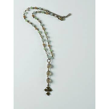 Collier de plage en pierre de calcédoine verte et dorée à l'automne