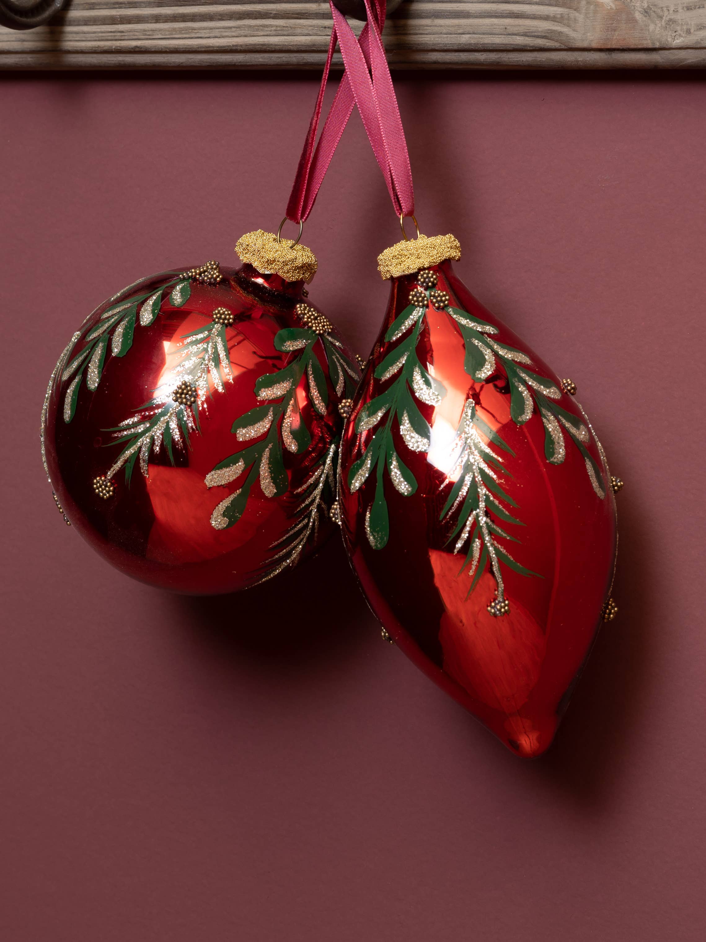 Boule rouge en verre de 100 mm et ornes en forme de fleuron, lot de 2 en vente B2B